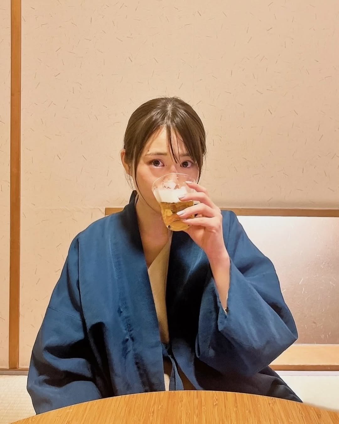 友人と温泉で束の間の休息。すっぴんでビール!も美しい山崎さん
