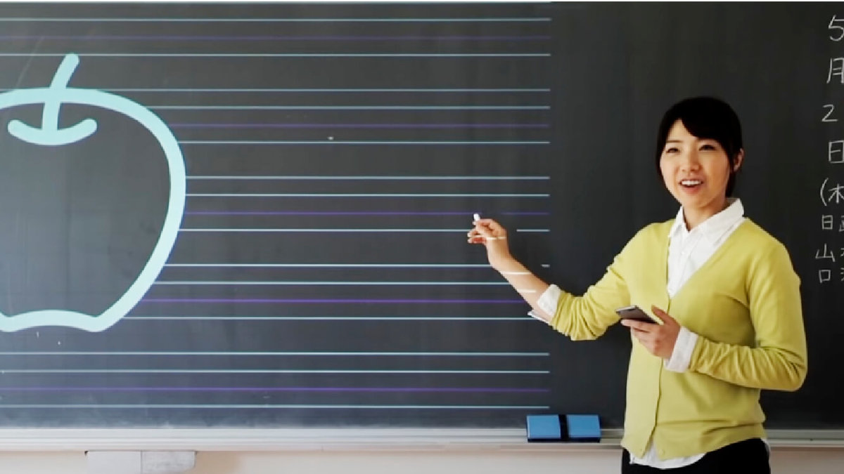 「ワイード」で黒板に映像を投影。映像の上からチョークで書き込むこともできる