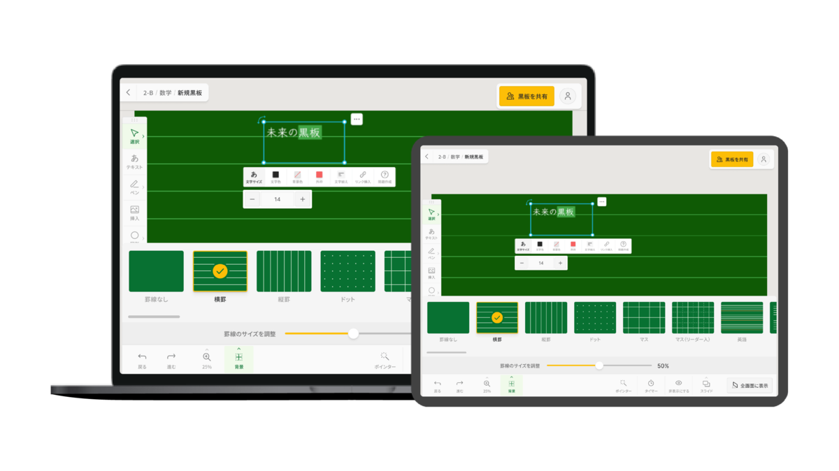 黒板用アプリ「Kocri」の使用例。数式があらかじめデータとして搭載されている