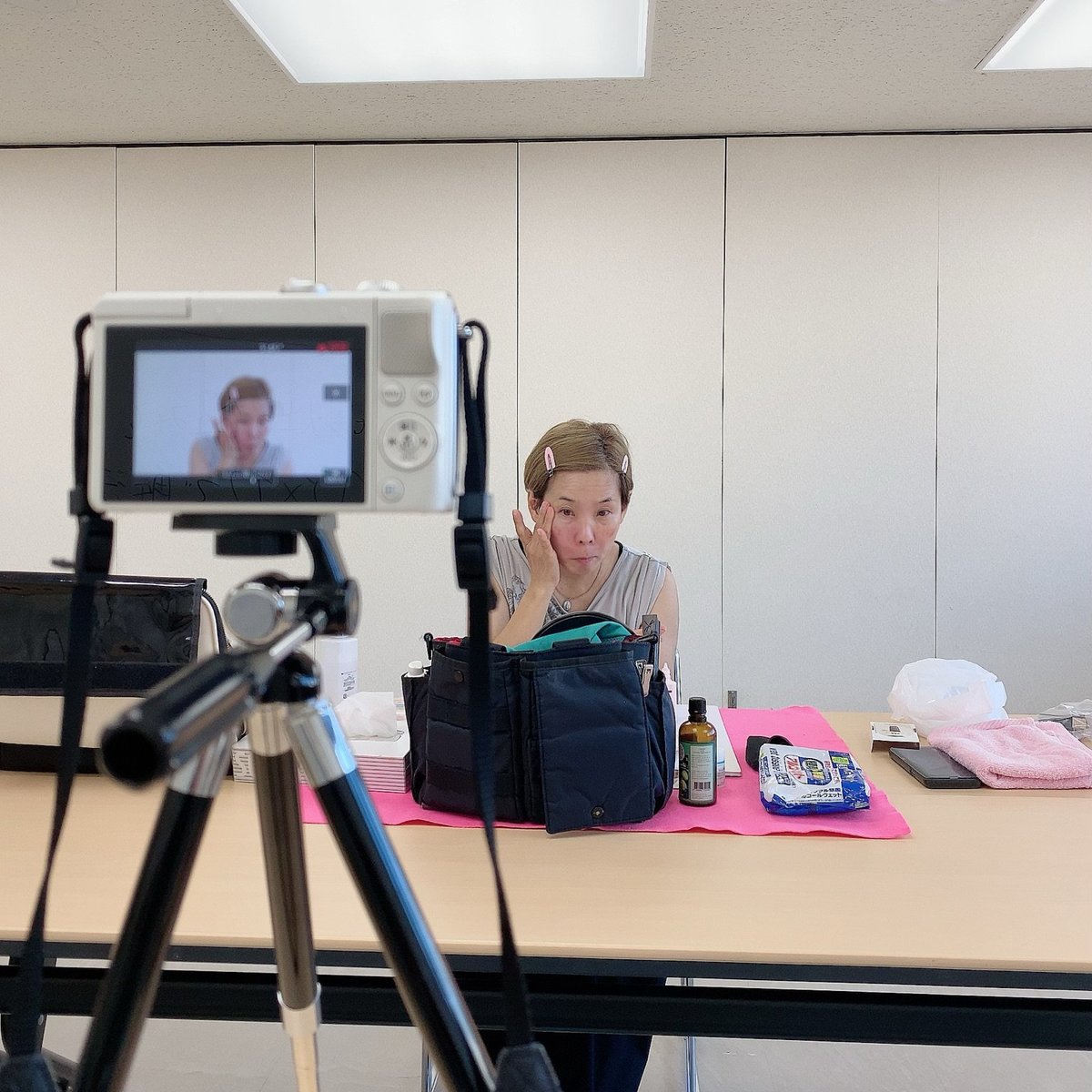 YouTubeで使用する動画を撮影中の化け子さん