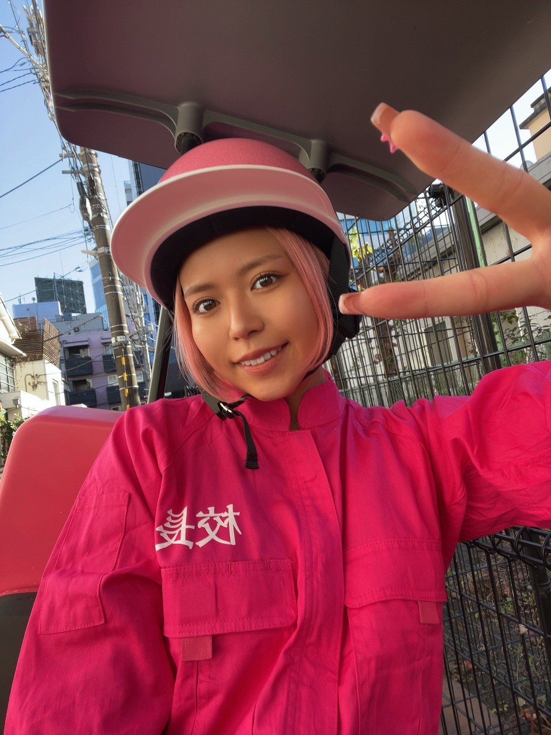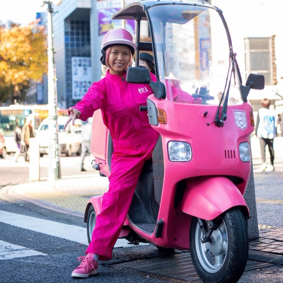ピンクのつなぎにピンクの原付で日本一周に挑戦