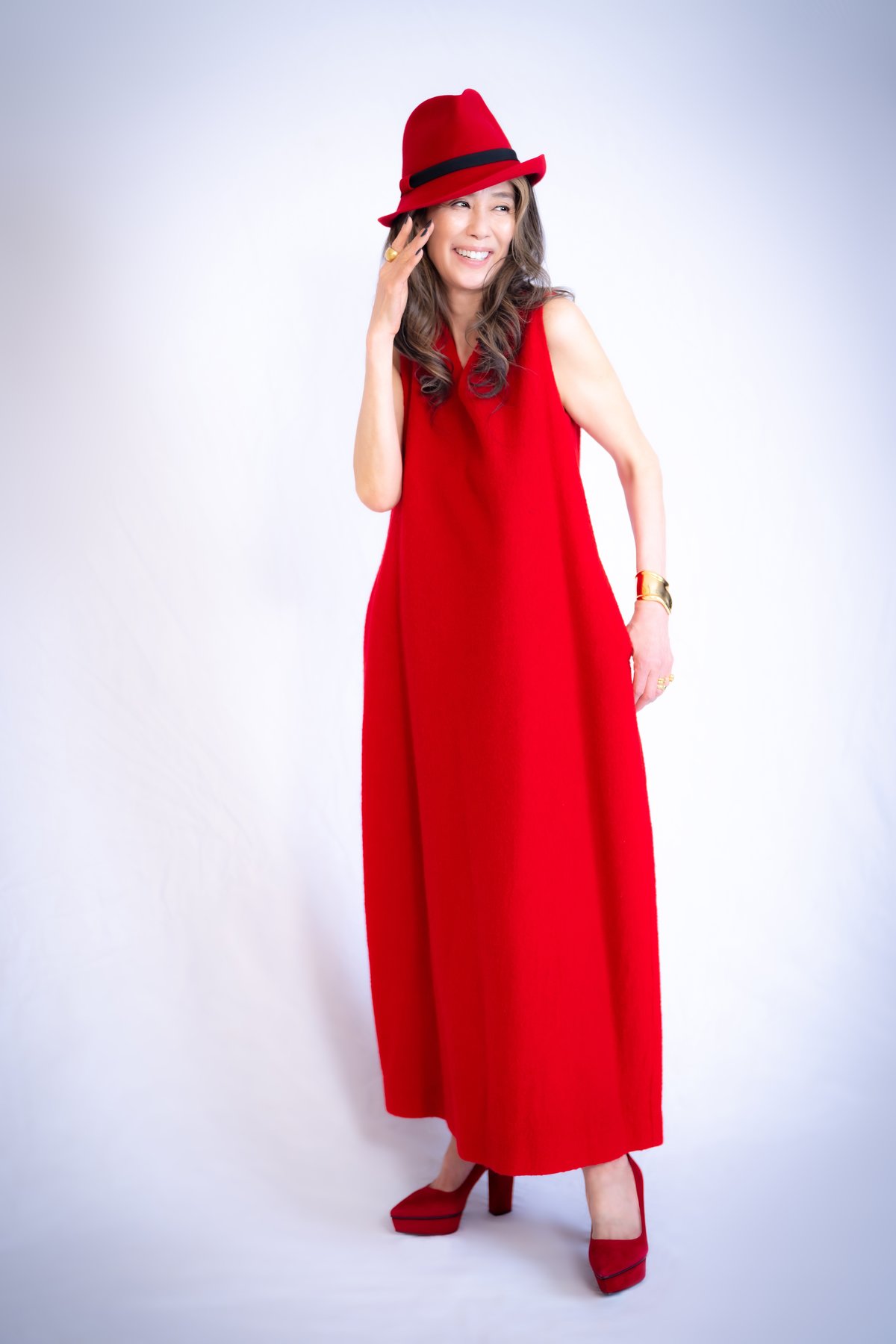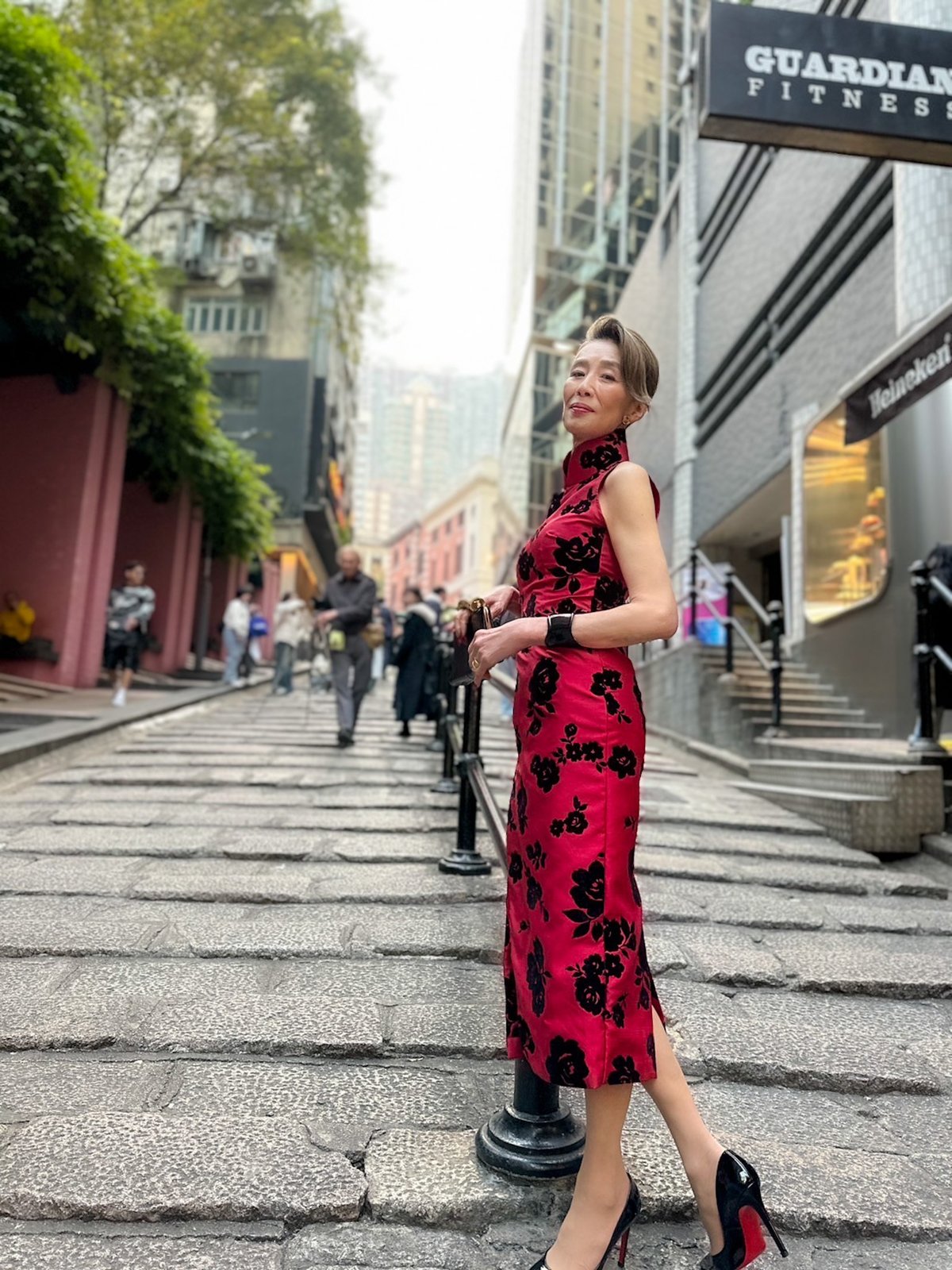 ロケ番組で訪れた香港でオーダーしたチャイナドレスを纏う萬田さん