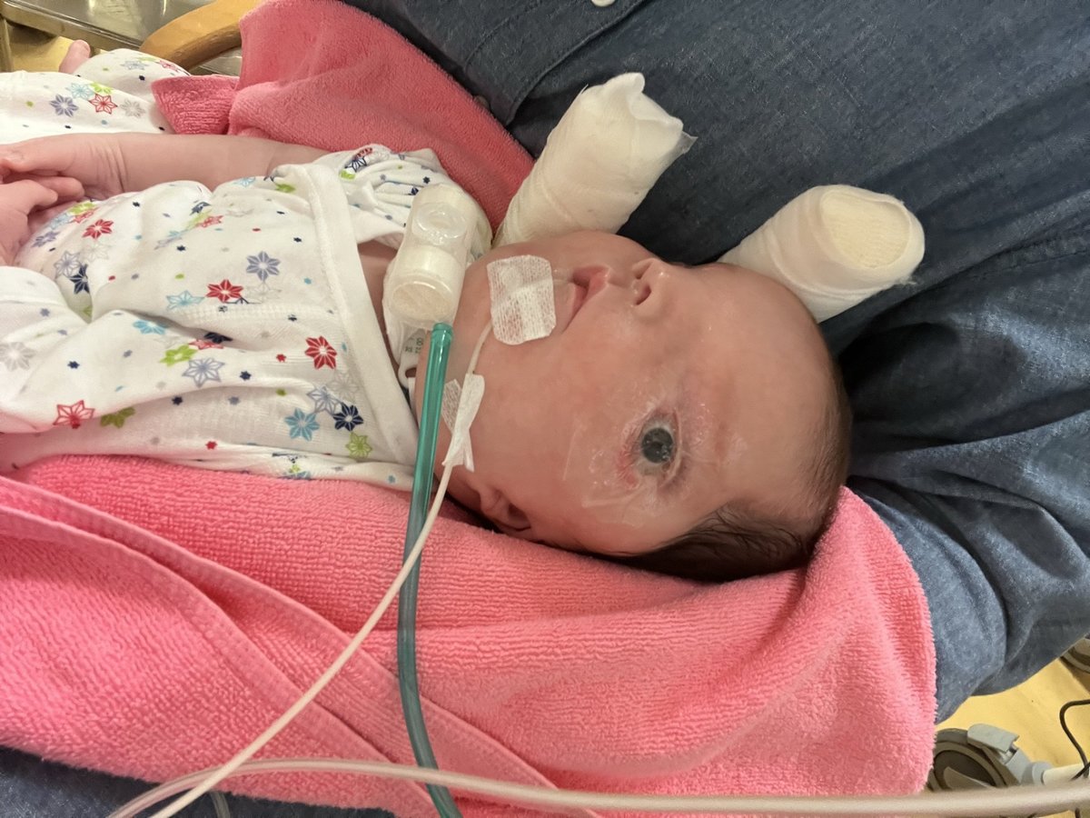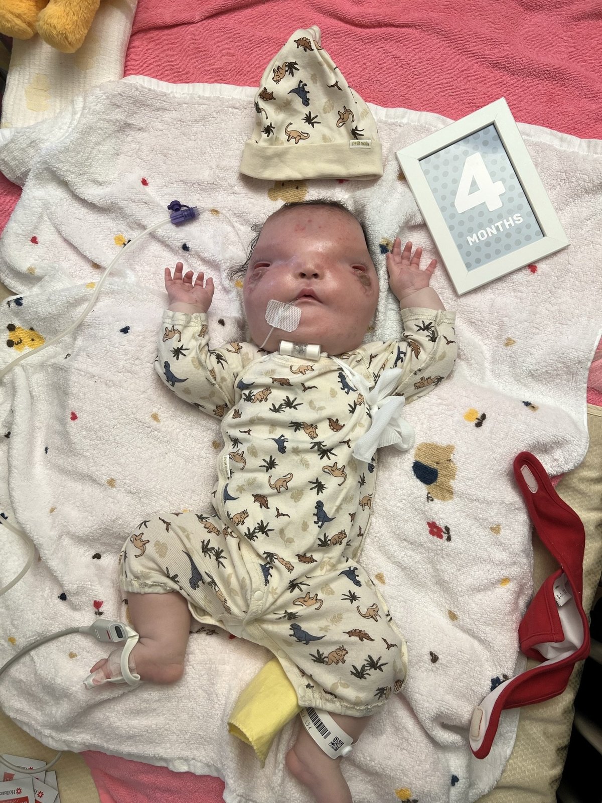 生後4か月。目のガーゼと手の抑制具が外され自由に!