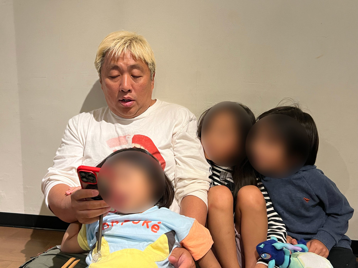 ゲームを楽しみながら家族団らんする旦那さんとお子さんたち