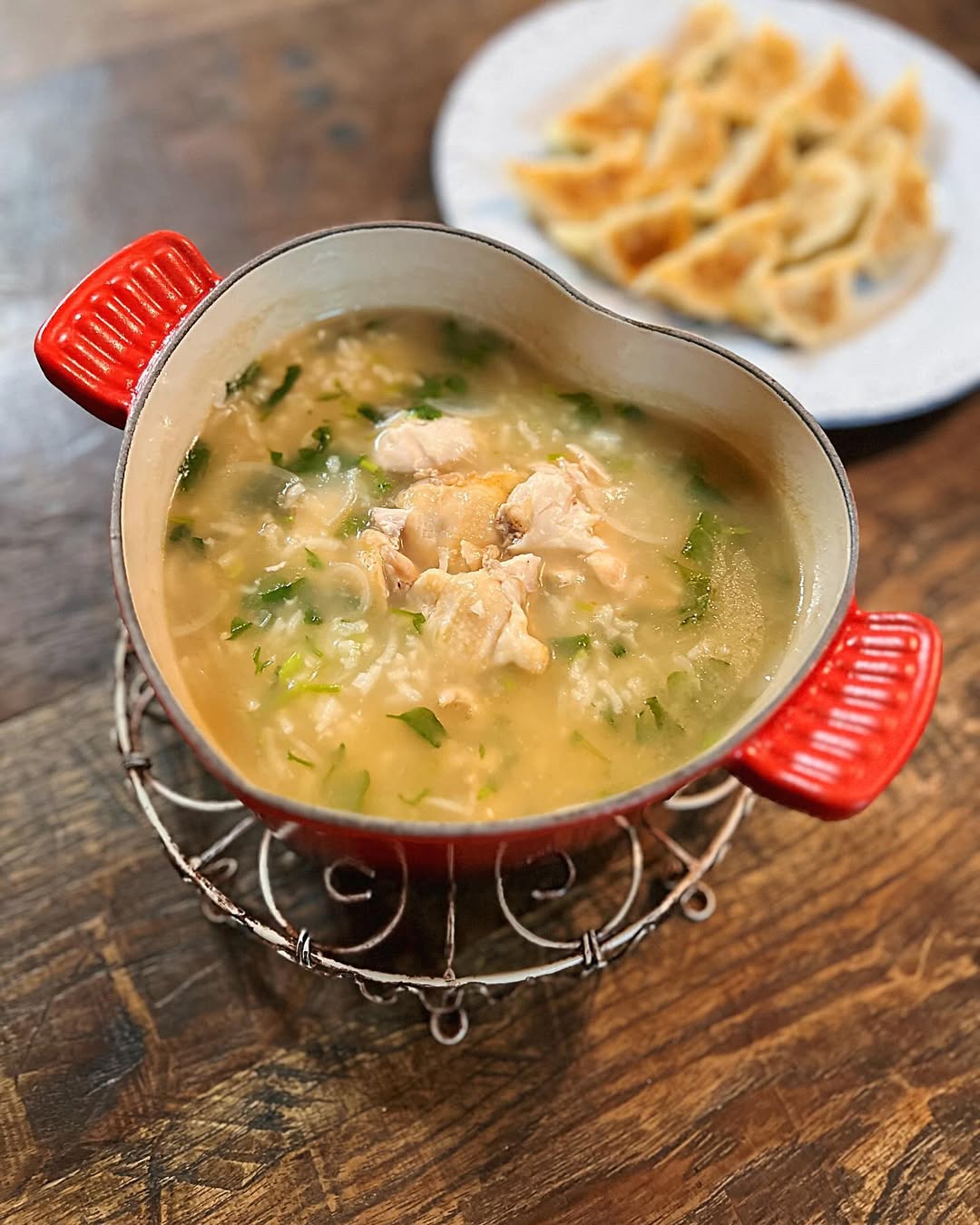 七草がゆは鶏の手羽元入りで子どもたちも大満足
