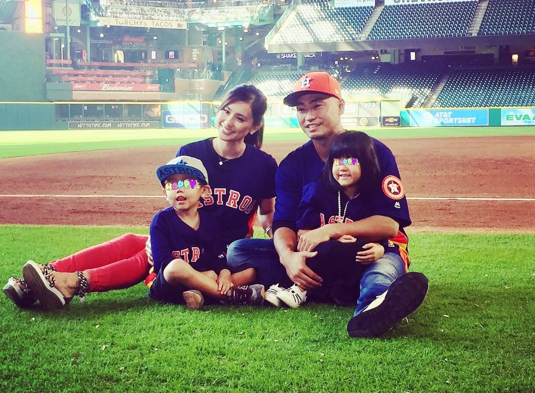 夫の青木宣親選手がヒューストン・アストロズに所属していたころの家族写真