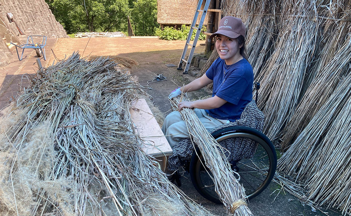 車椅子で茅葺き職人の仕事に励む渋谷さん