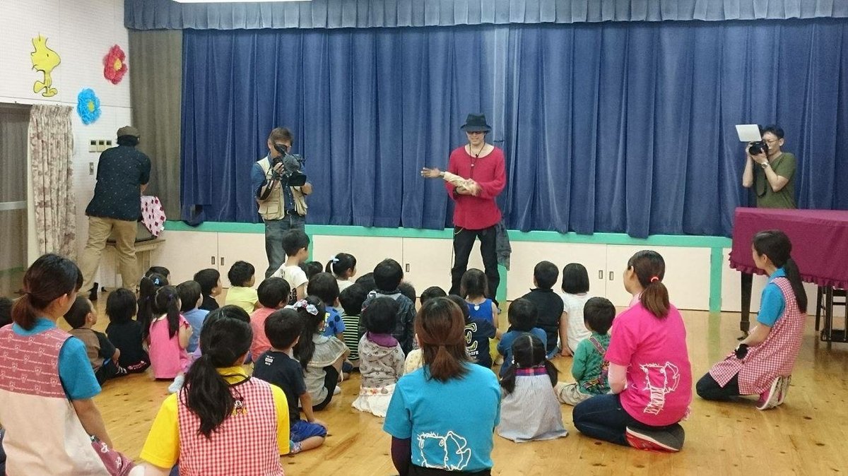 ホラーイベントに向けて子どもたちにお化け屋敷について語るマイケルティーさん