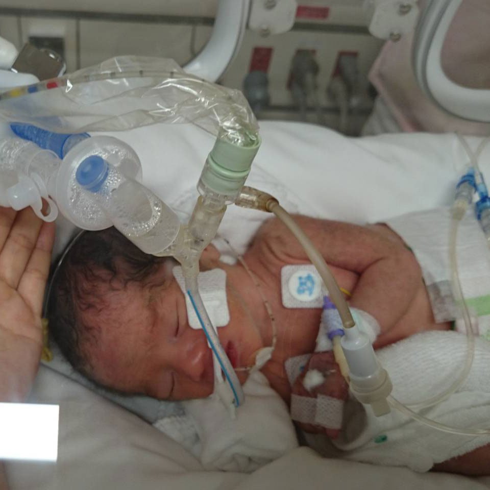 人工呼吸器をつけている生後1日目の息子さん