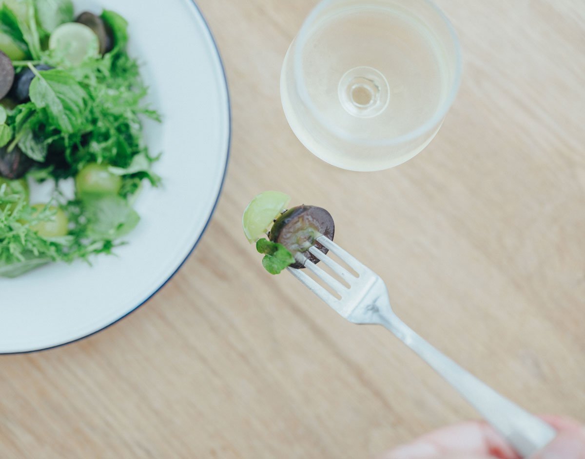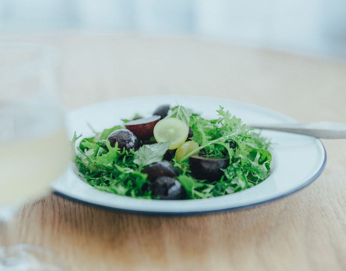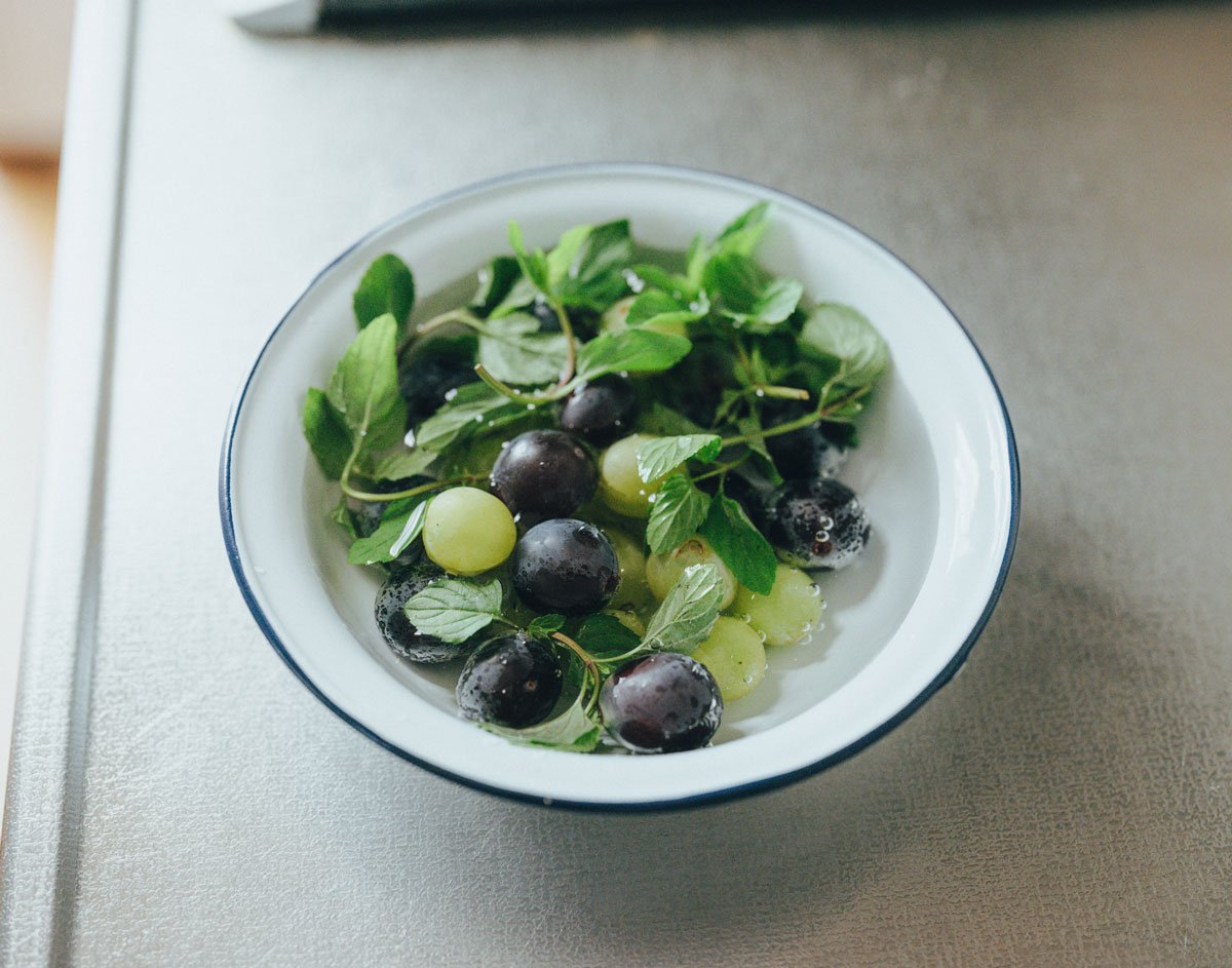 秋らしく「ぶどうとミントのサラダ」アペロを楽しむ。