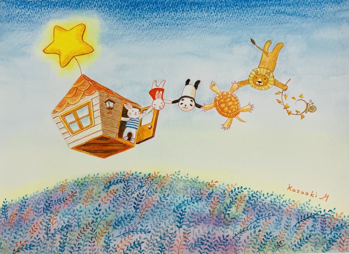 今年、絵本原画展で展示した絵(「さあいこう」)で、未発表作品『アンリとリダ』のいち場面が描かれている