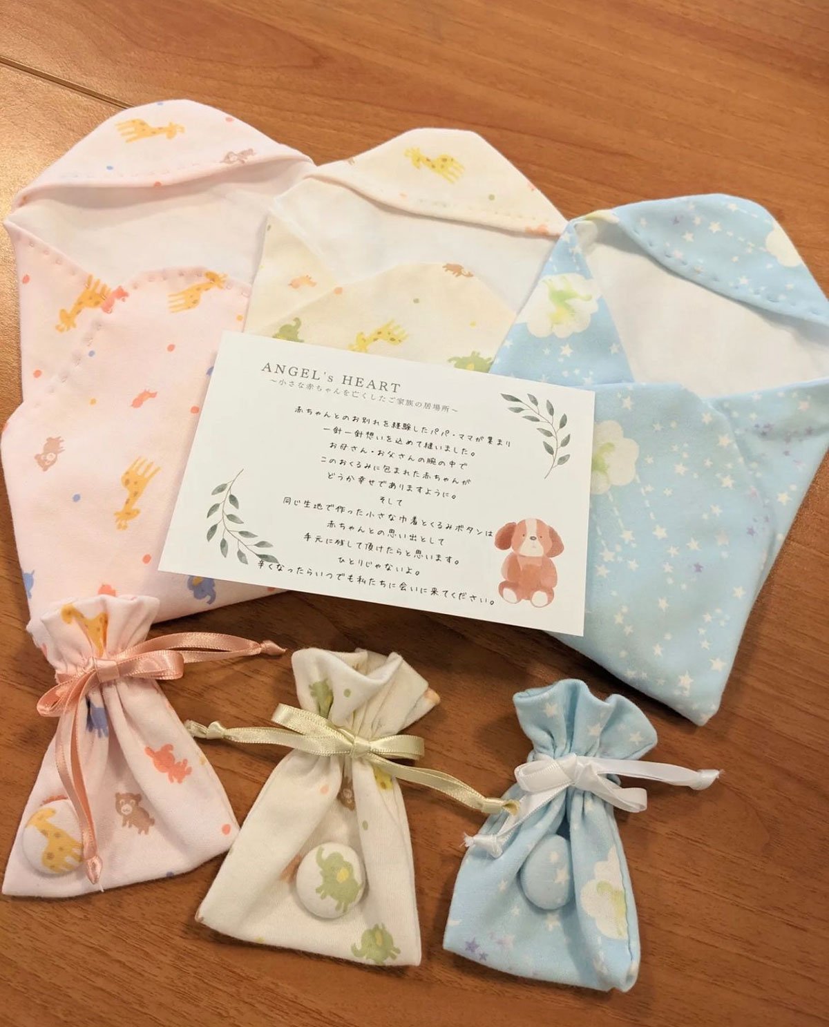 死産では赤ちゃんが小さすぎて着せる産着がないことから、さまざまなサイズを手作りしている