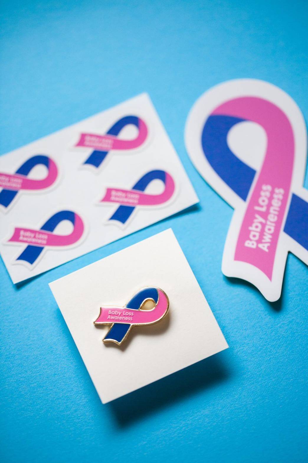 クラウドファンディングで制作したピンク&ブルーリボン運動を啓発するピンバッチ(©Akira Shingaki)