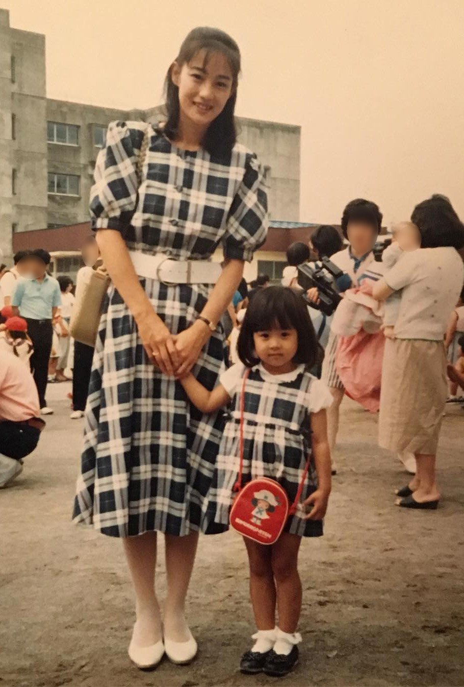 「お母さん譲りの美人」お母さん手作りのお揃いのワンピース姿の幼少期の加藤綾子さん
