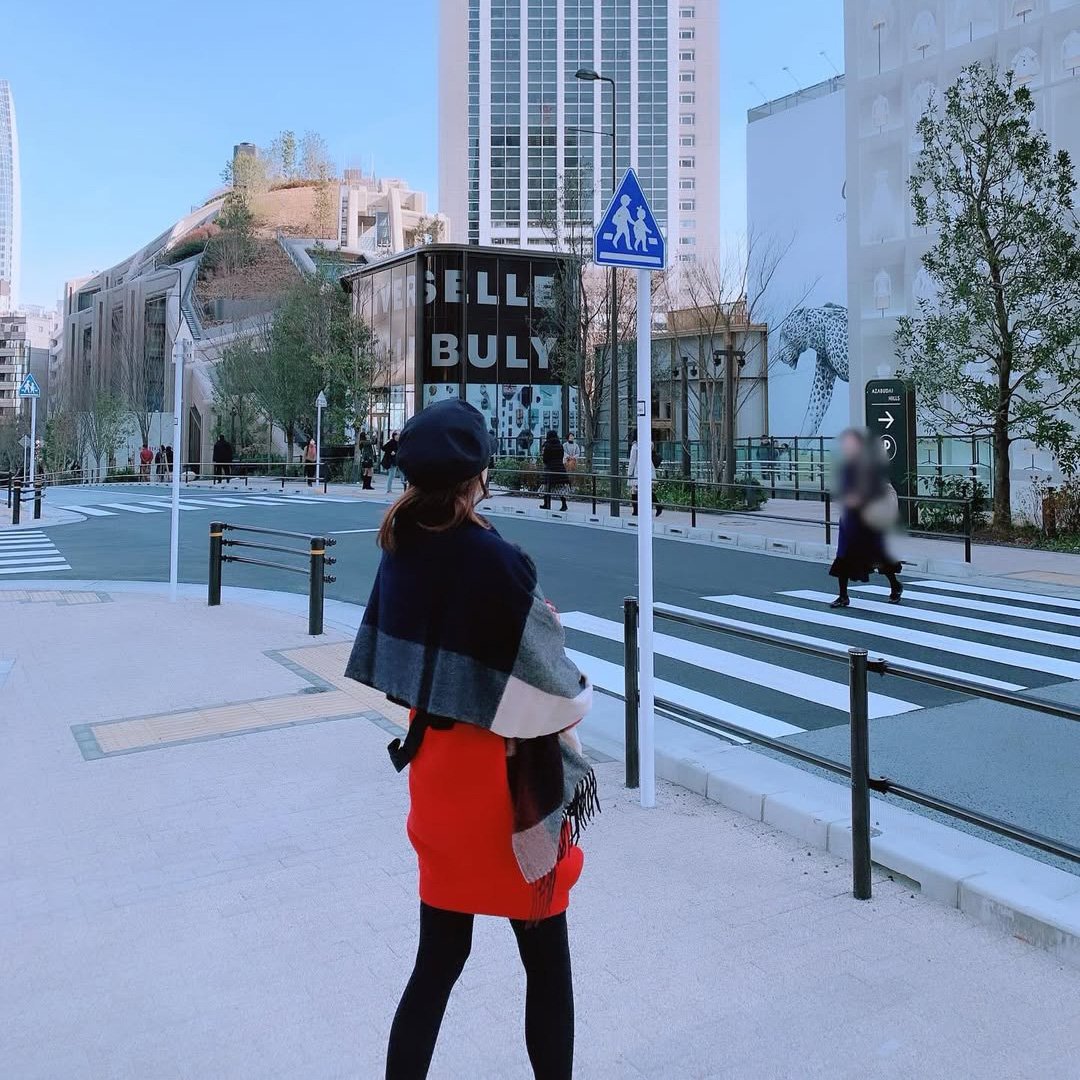 娘さんを抱っこしてお散歩する加藤綾子さん