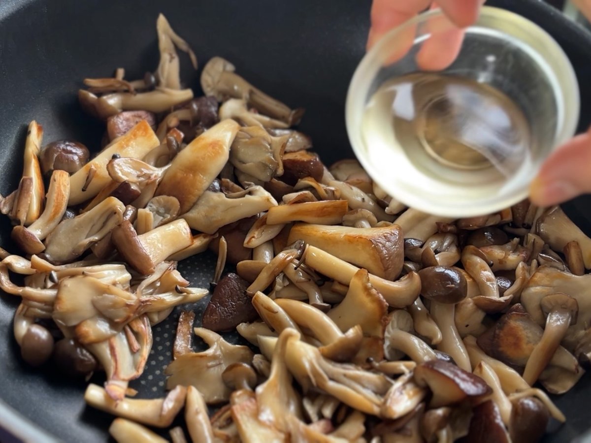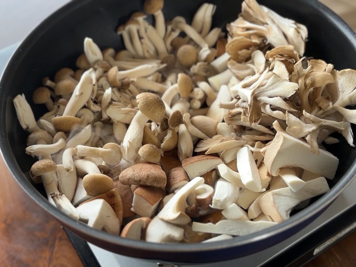 山盛りのきのこも炒めることでかさが減り食べやすくなる