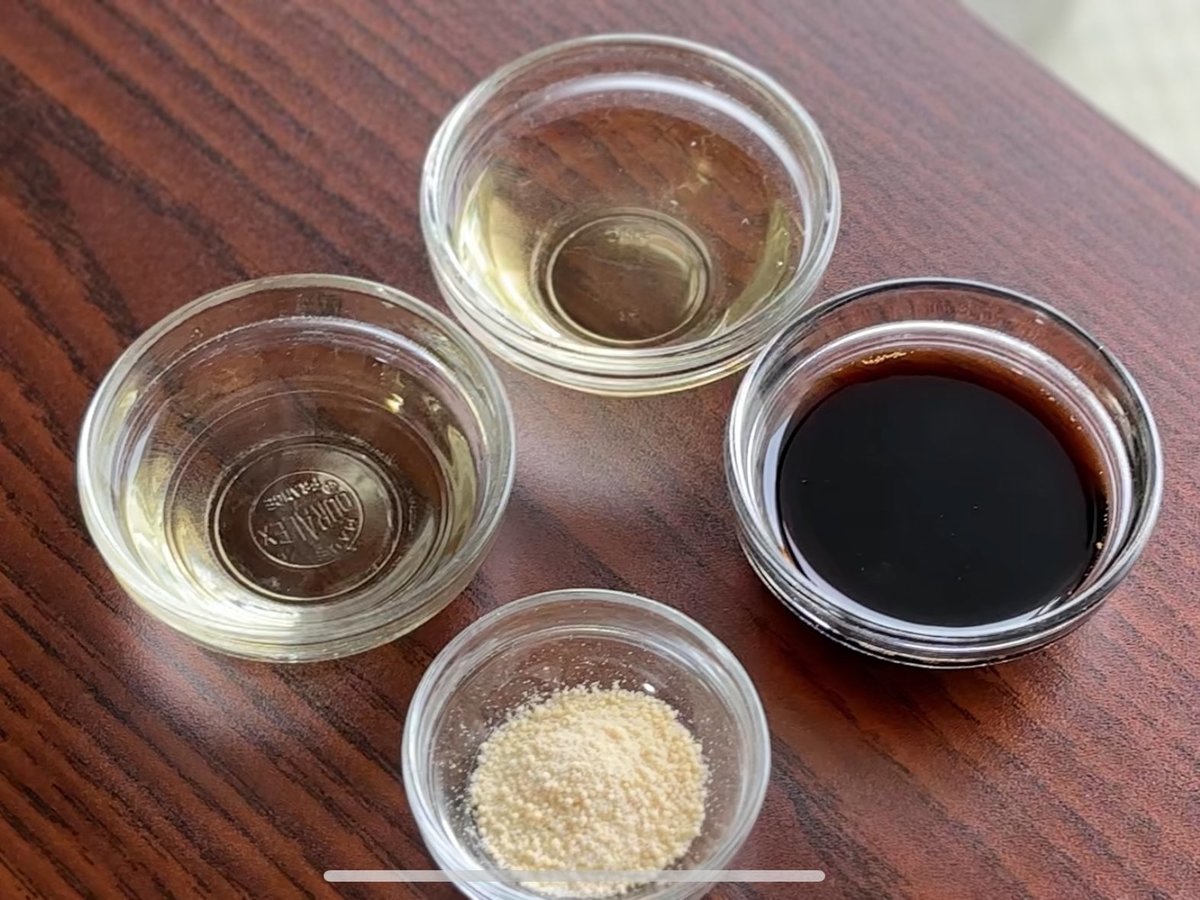 醤油、みりん、鶏がらスープ、酢で味をつける