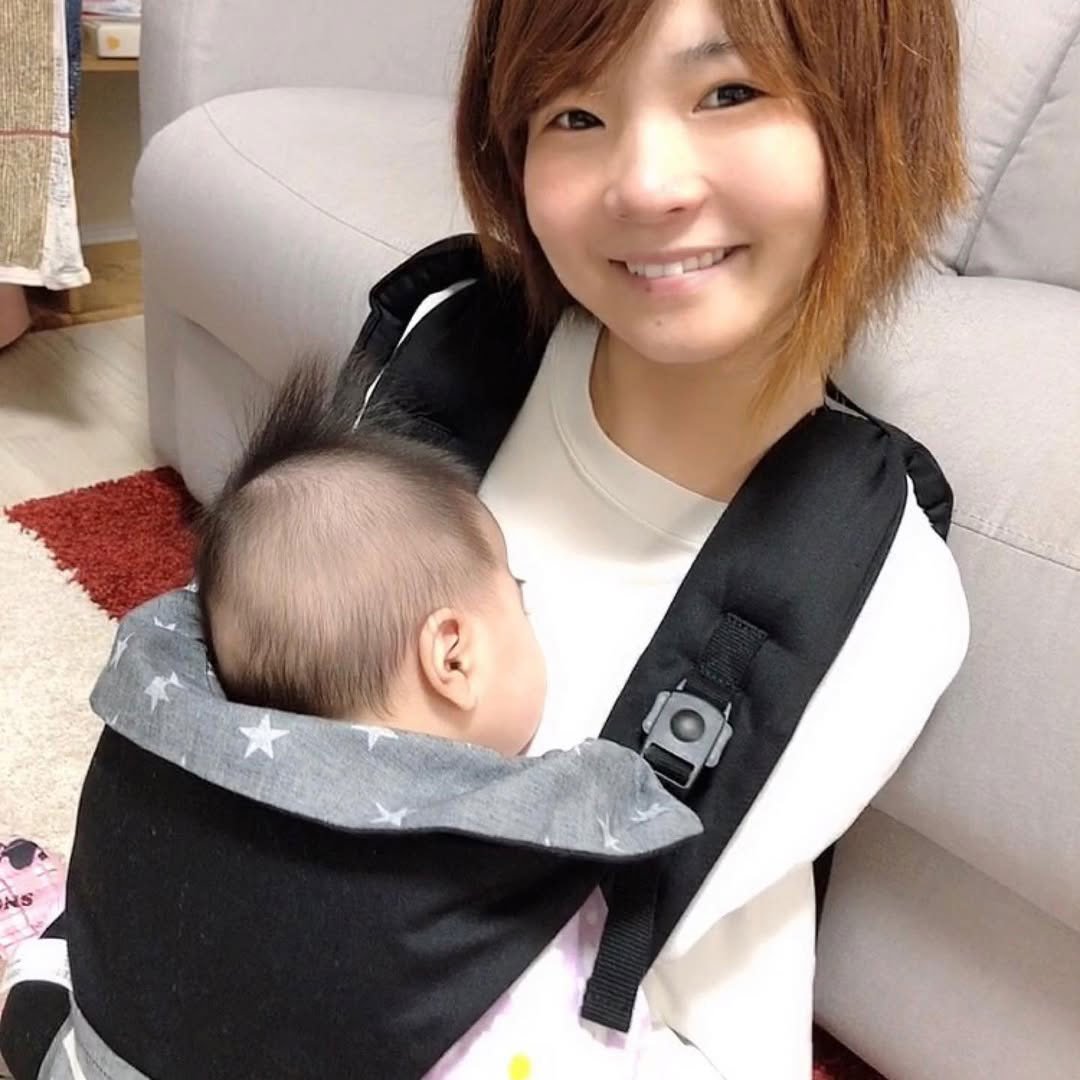 娘が生後間もないころ、抱っこ紐と専用の袋の中に娘を包んで