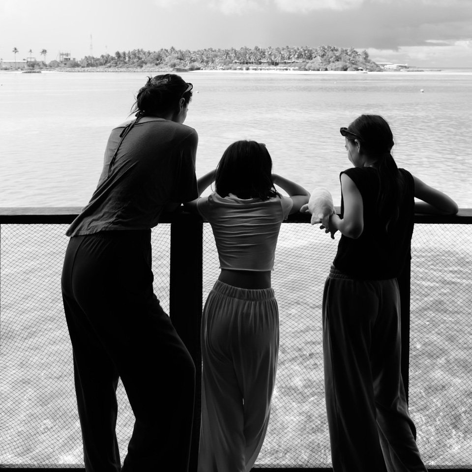 家族で訪れたモルディブの水上コテージでふたりの娘さんと
