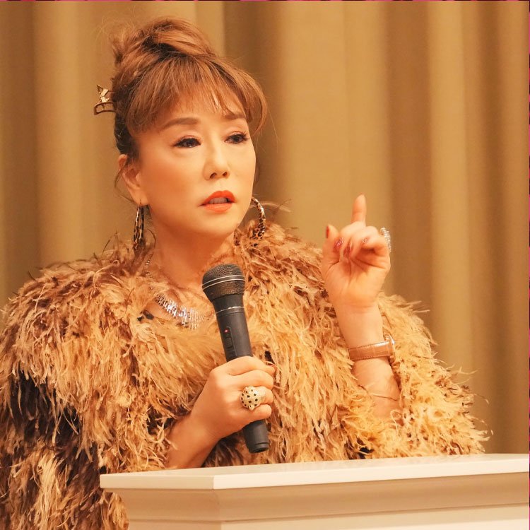 起業や会社経営ほか講演会で話をするマダム信子さん