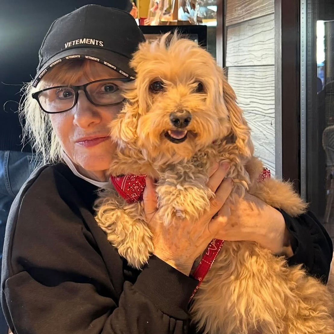 次男が飼っている犬を愛おしそうに抱くペピーさん