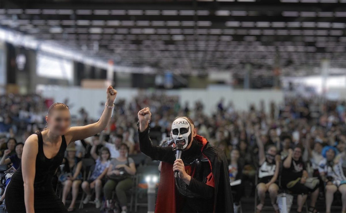 芸を披露する鉄拳さん