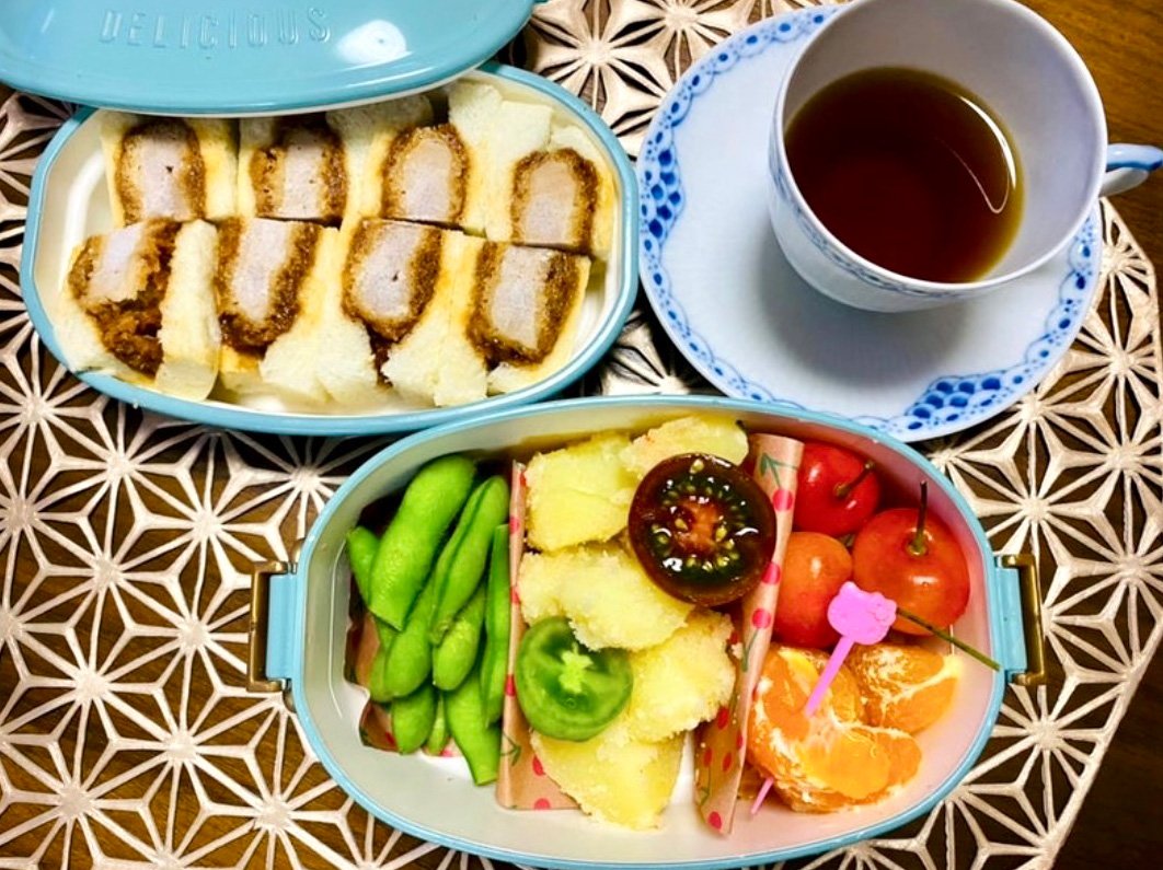 冷凍したカツサンドを保冷剤代わりに入れた「手抜き弁当」