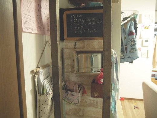 リビングにオールインワン収納!斜め横は通園の準備スペース☆