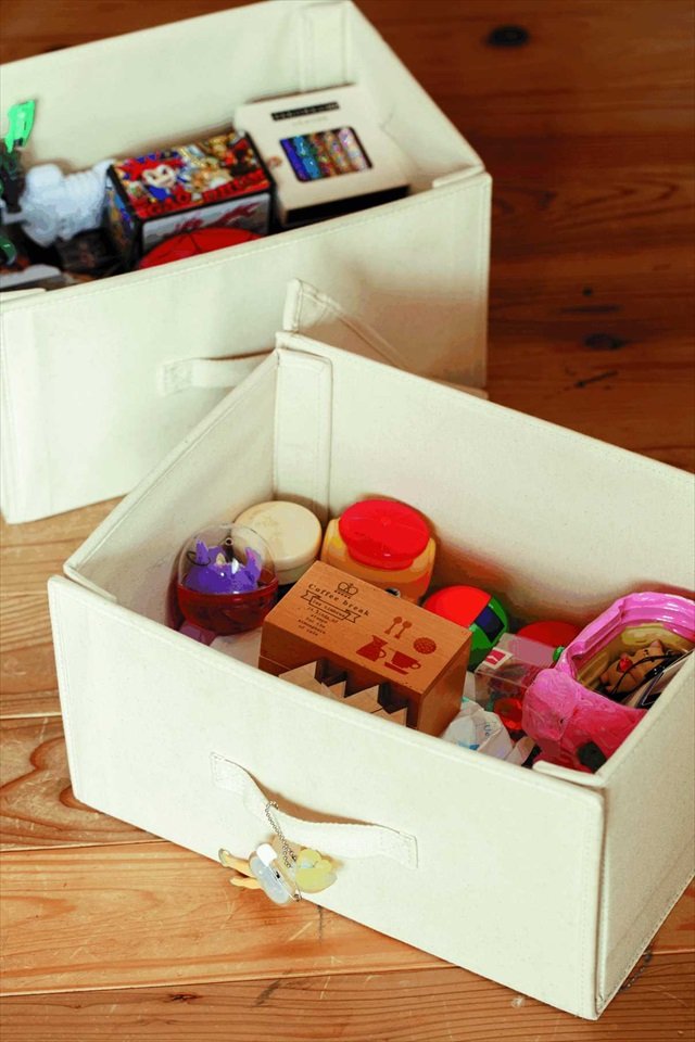 「遊んだおもちゃは寝る前に "とりあえずBOX"に隠す!」小学生の子ども2人が 協力してくれるからラク!