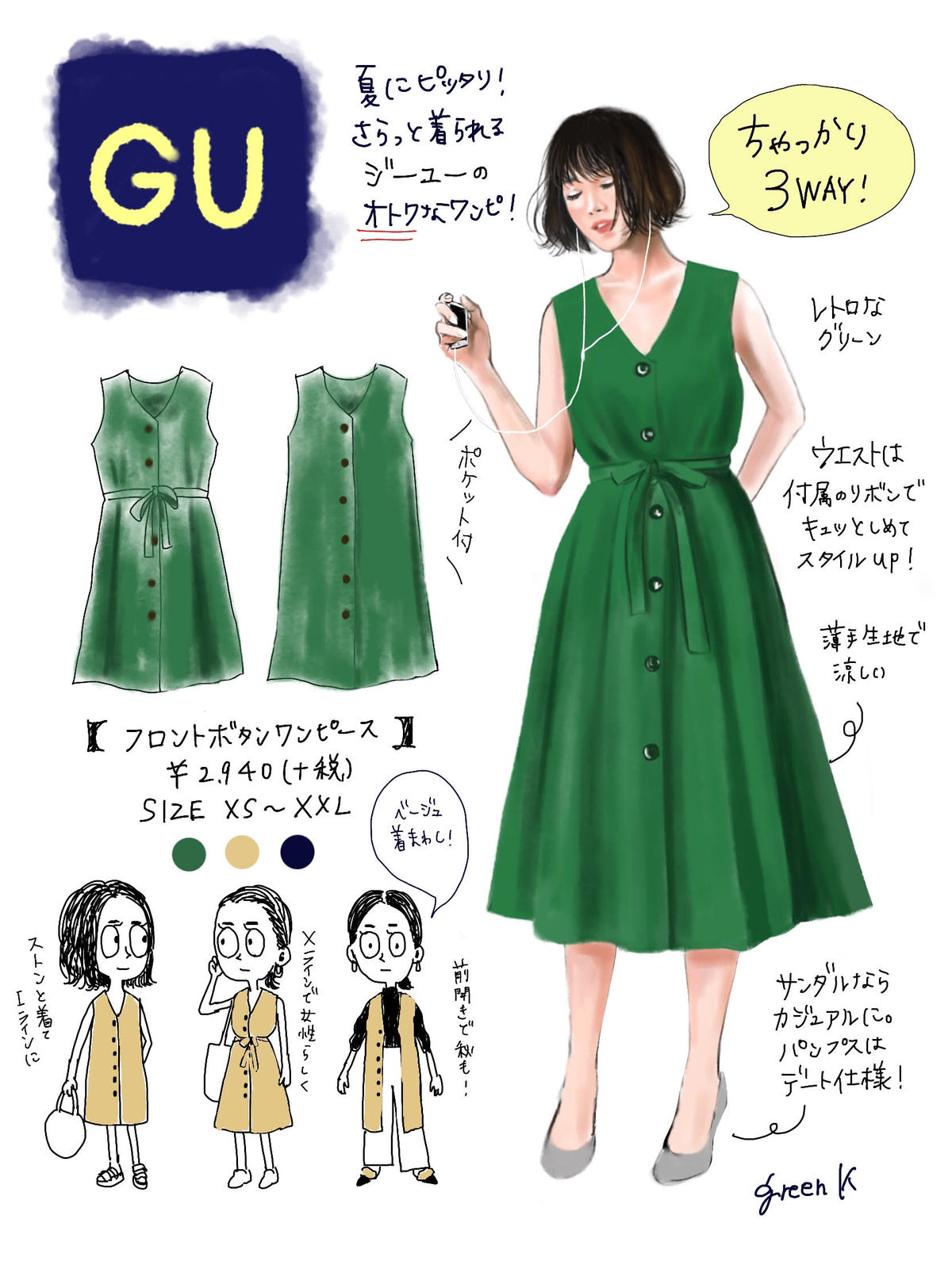 vol.16 GU「フロントボタンワンピース」2940円なのに1枚で3度オイシイ!
