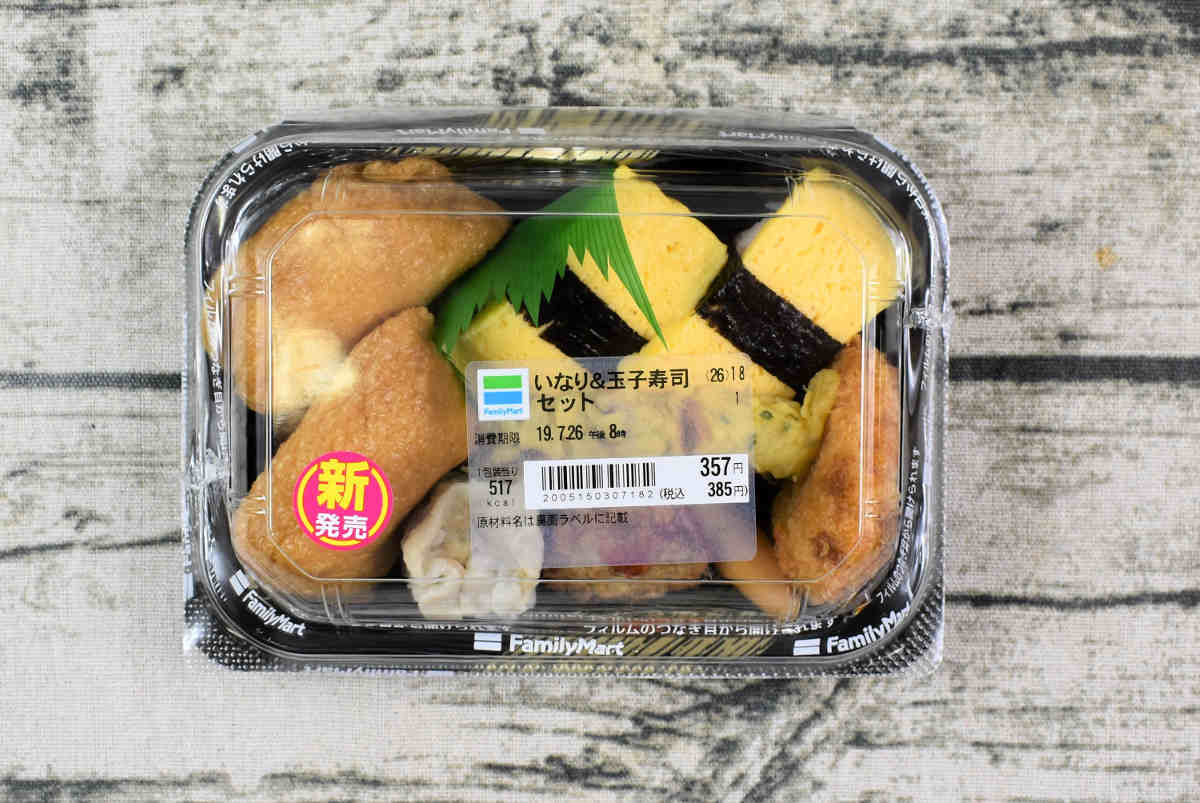 ファミマ「いなり&玉子寿司セット」5種類のおかずとお寿司が合体! 子どもウケも狙える