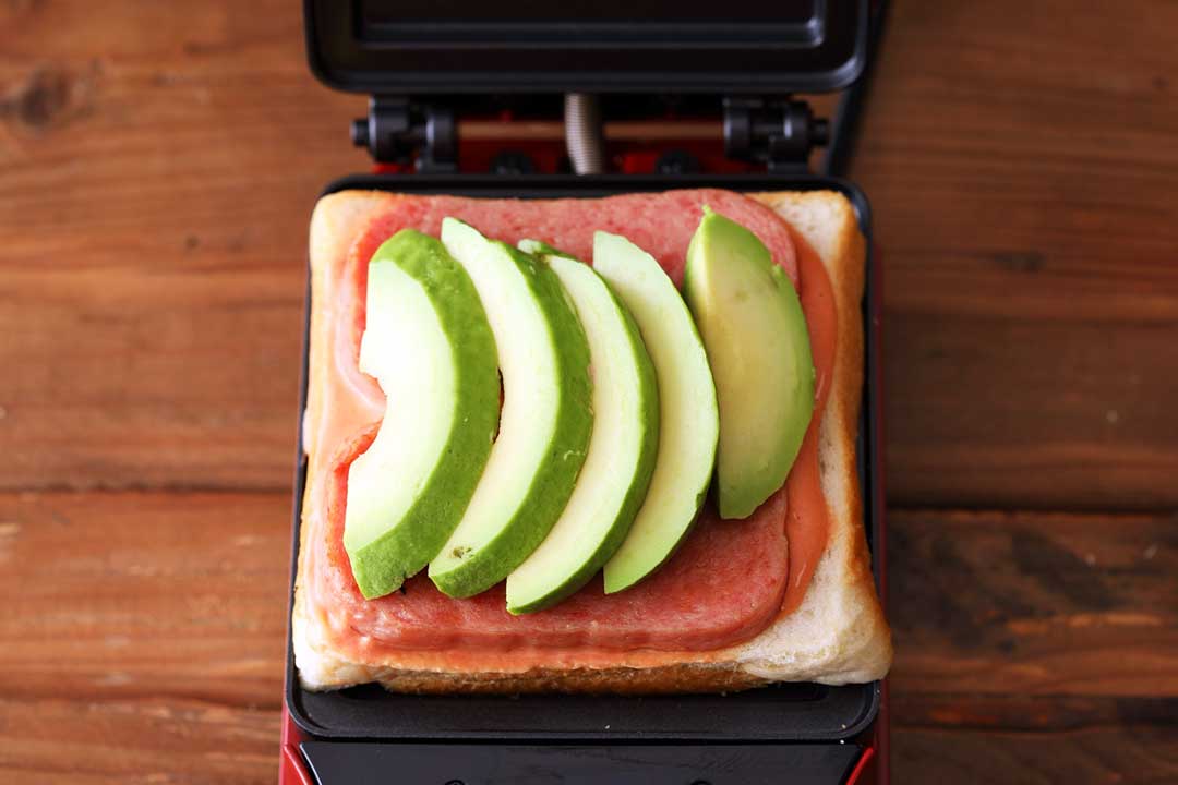 ホットサンドメーカーに③をセットする。②をのせたらカバーを閉じて焼く。