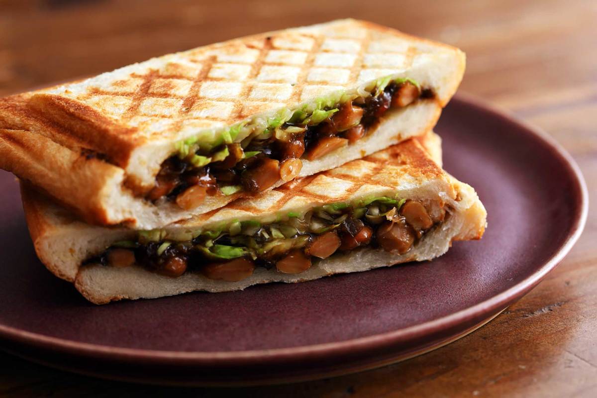 ホットサンドメーカーに③をセットする。もう1枚のパンをのせたらカバーを閉じて焼く。