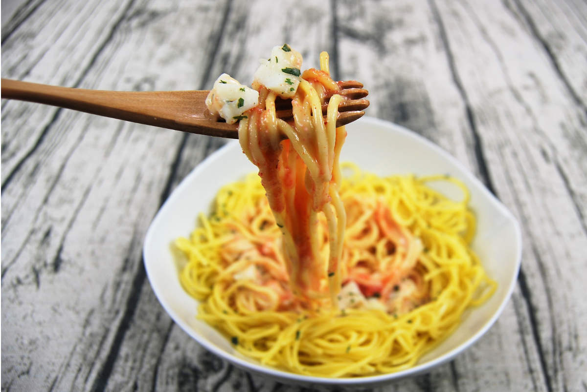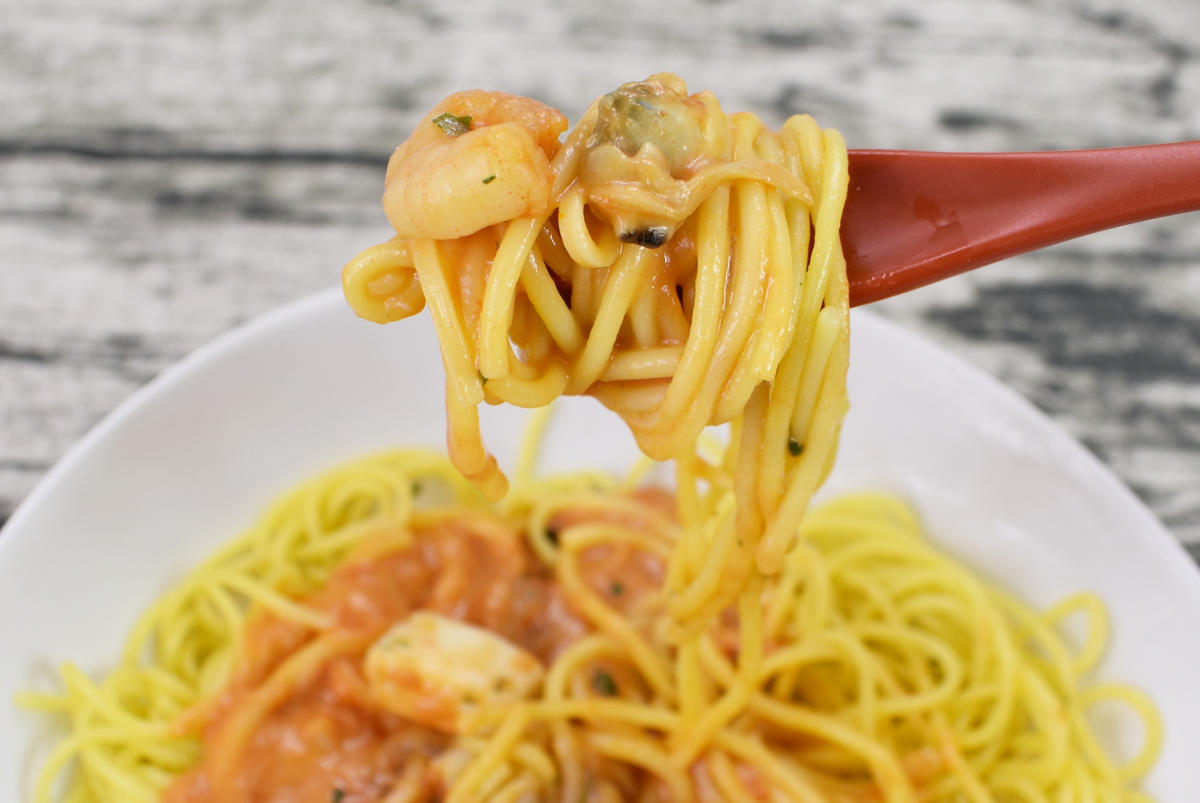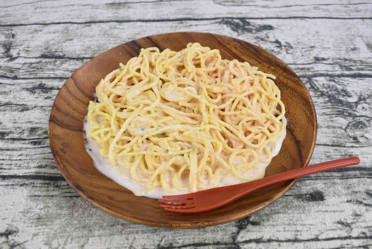 次にご紹介するのは、ファミマから発売された「生パスタ ソースたっぷり明太子クリーム」(税込450円)。発売直後から、ネットでも「おいしい!」と噂のファミマ「生パスタ ソースたっぷり明太子クリーム」を、さっそく食レポしていきます!