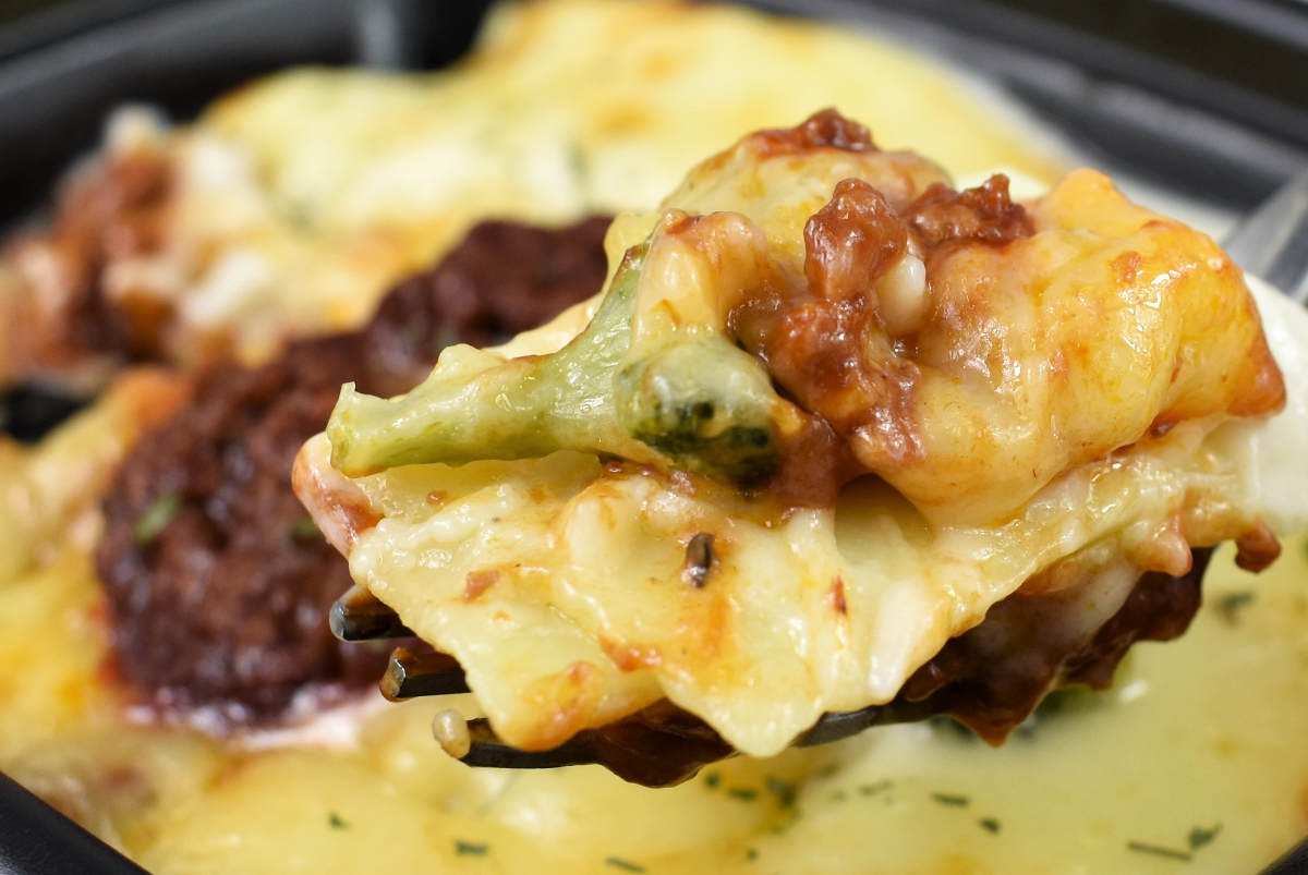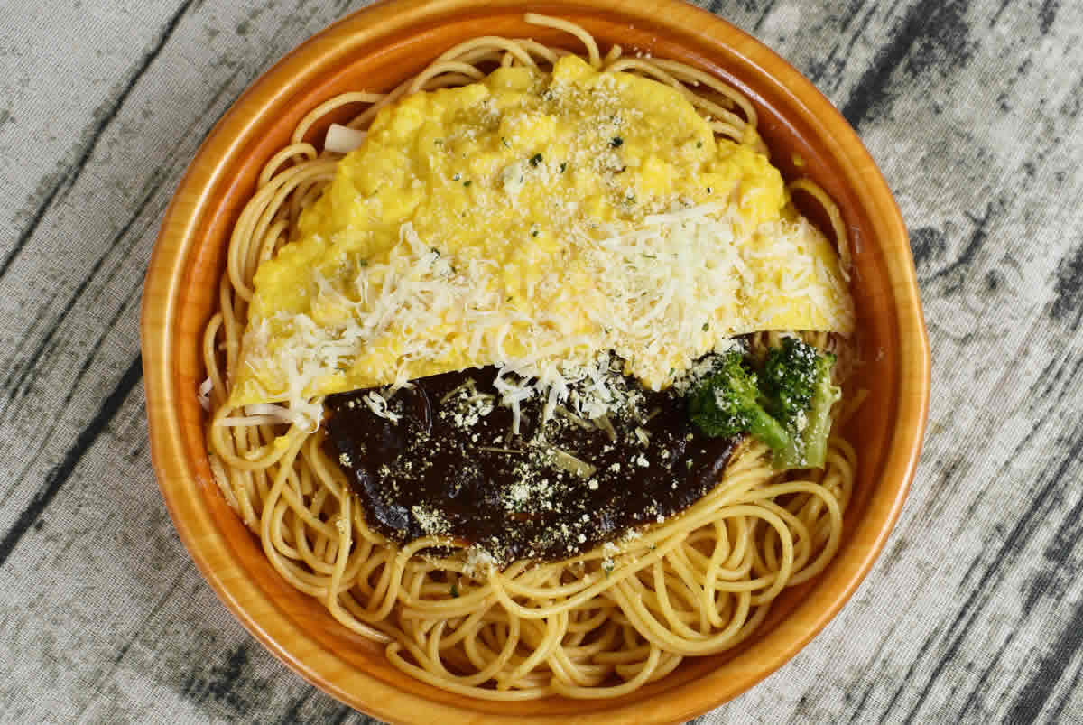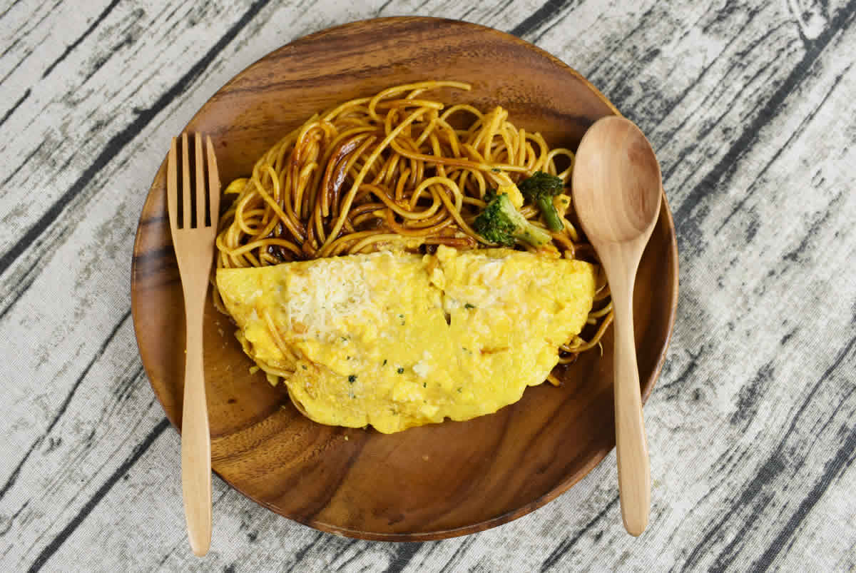 続いて、パスタにふわりと覆いかぶさるオムレツをひとくち。溶け出したチーズが卵に絡まり、深いコクを生み出しています。半熟状の卵は“ふわとろ”な口当たりで、思わずホッとするようなやさしい味わい。添えられたブロッコリーは歯ごたえが抜群で、箸休めにぴったりです。
