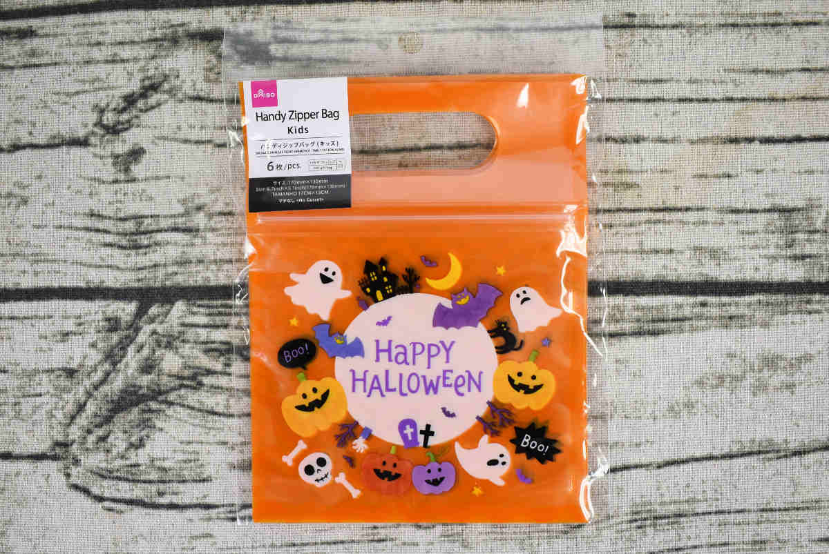 ダイソー「ハンディジップバッグ」ジップ式でハロウィンのお菓子交換に大活躍の予感