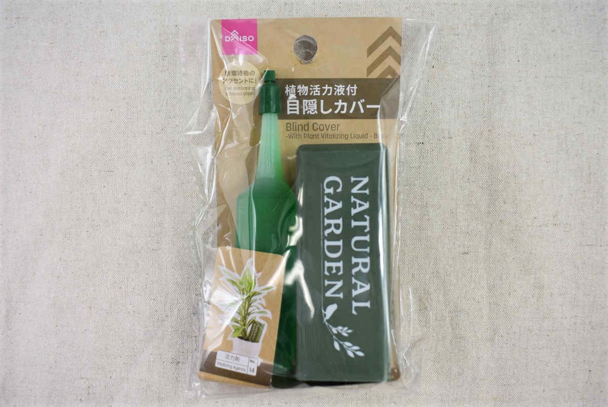 ダイソー「目隠しカバー(植物活力液付、ボックス)」 生活感満載の活力剤を可愛く見せる