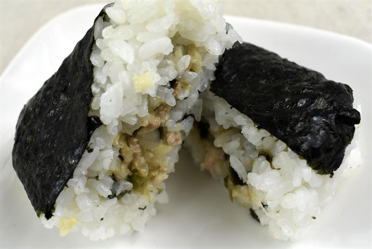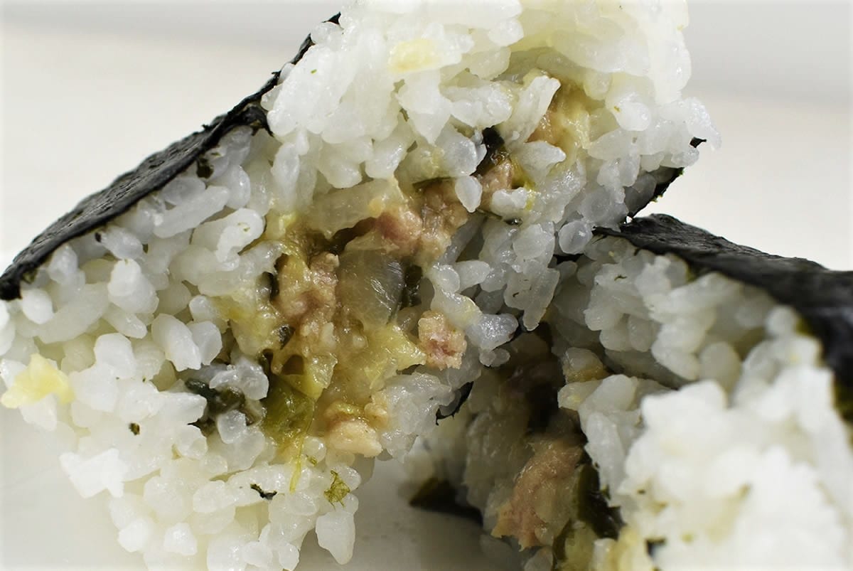 ローソン「ここだけにぎり(ぎょうざの中具)」夕食前の小腹を満たすジューシーなおにぎり
