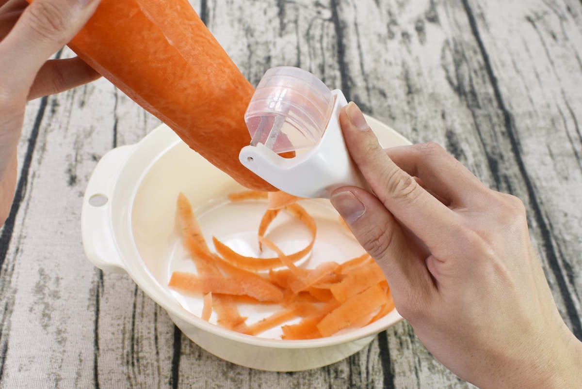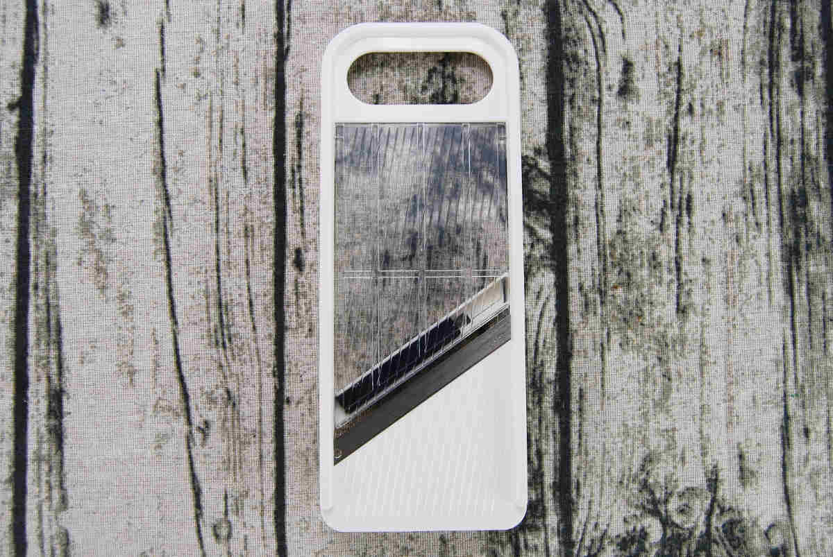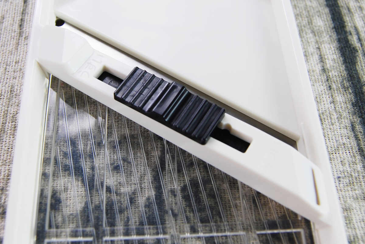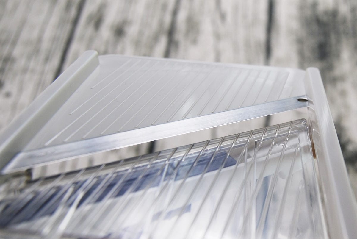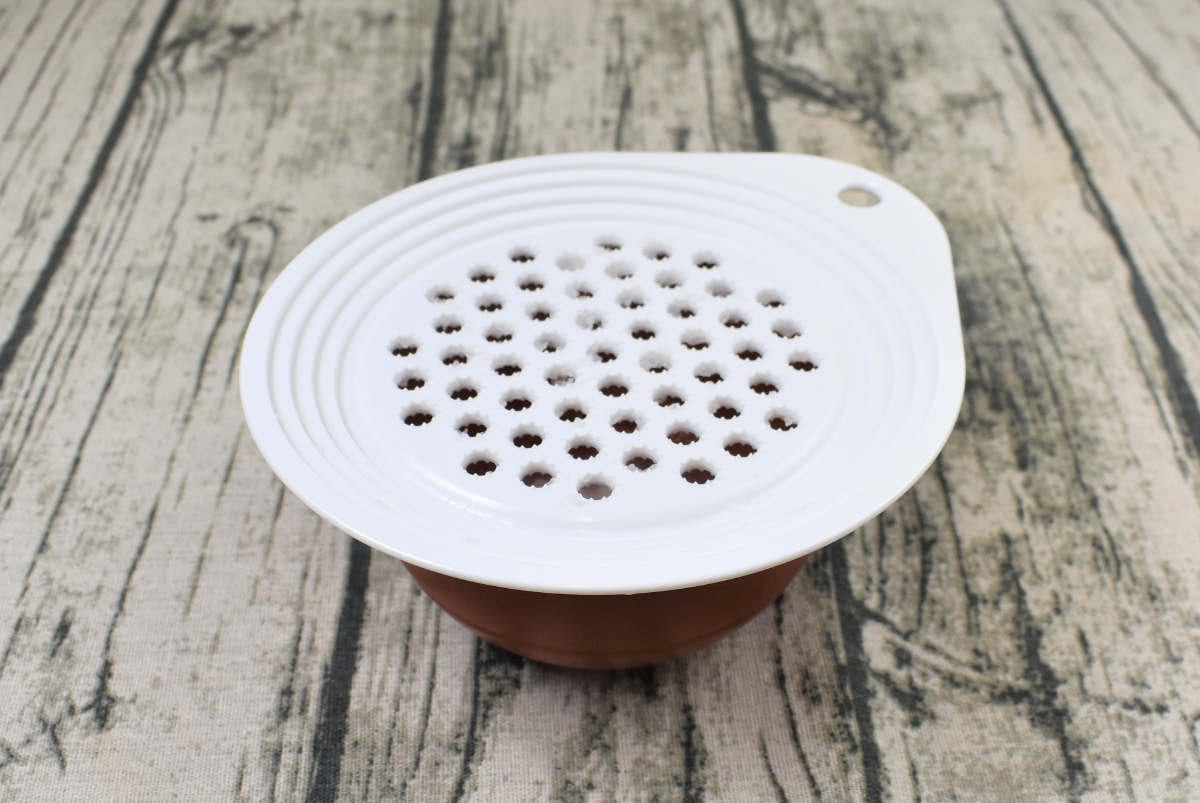 次にタテ向きにして床に置き、鍋フタが立つのか検証します。実際に置いてみたところ、持ち手がフタを支えて自立しました!フタを支える床と接地した部分は幅広く、バランスが安定して倒れる心配もありません。これならフタを置く場所が少なくて済み、調理スペースが拡がりそうです。