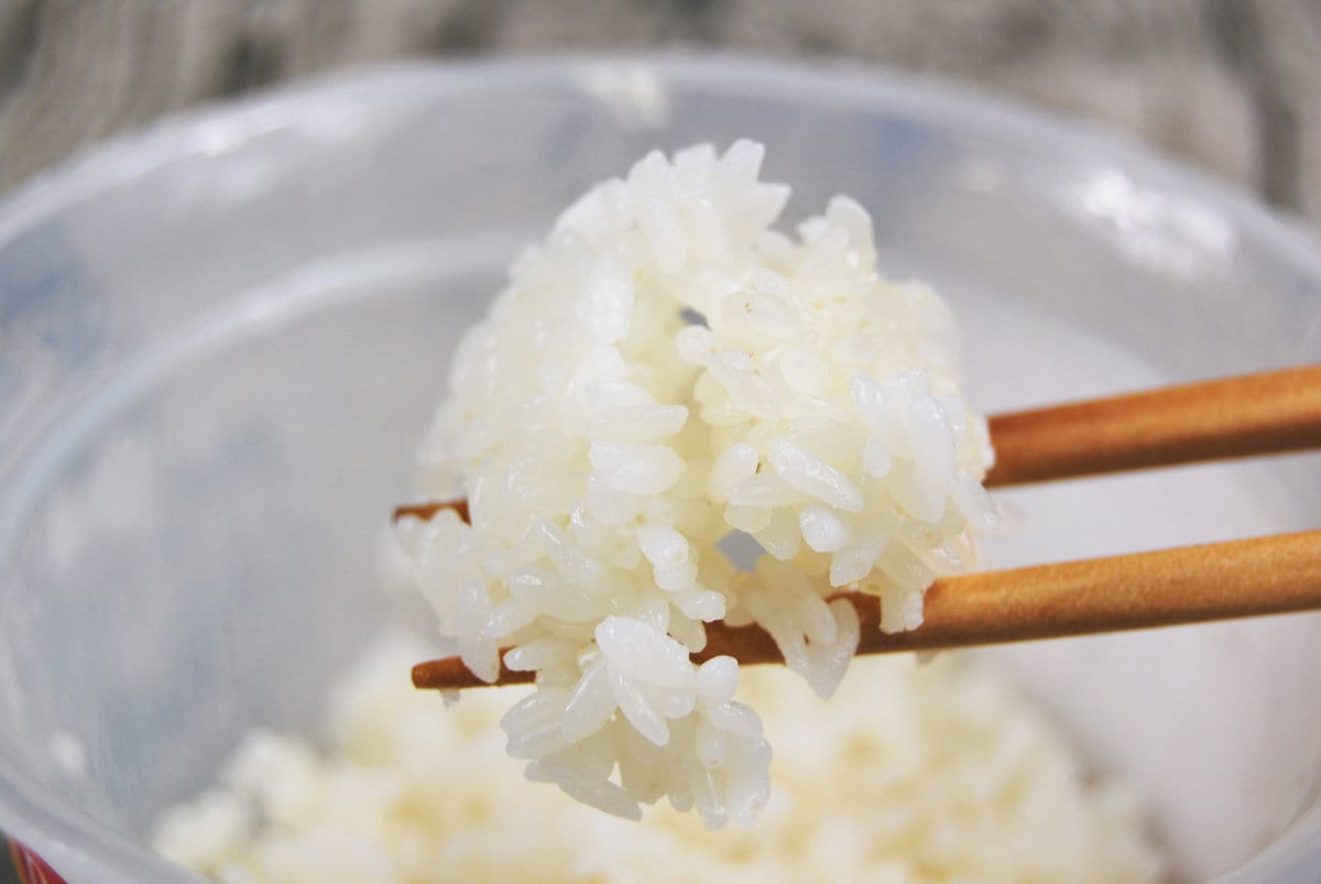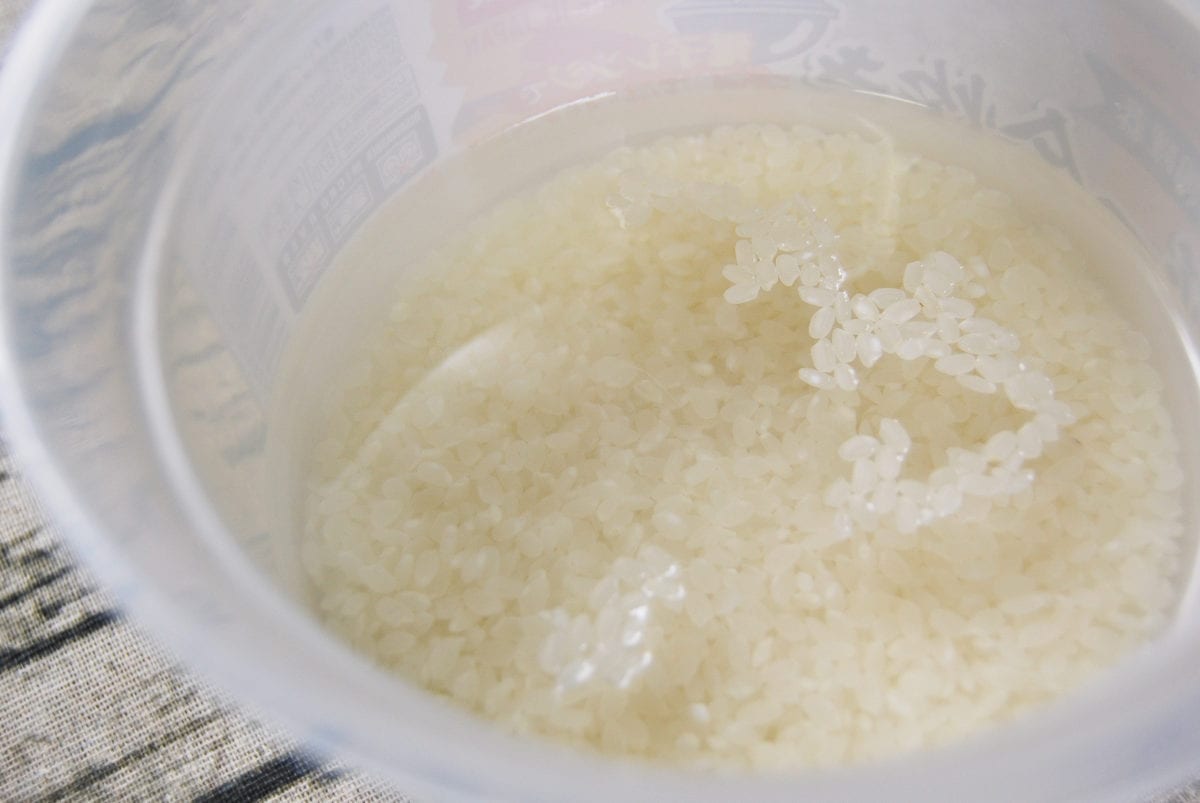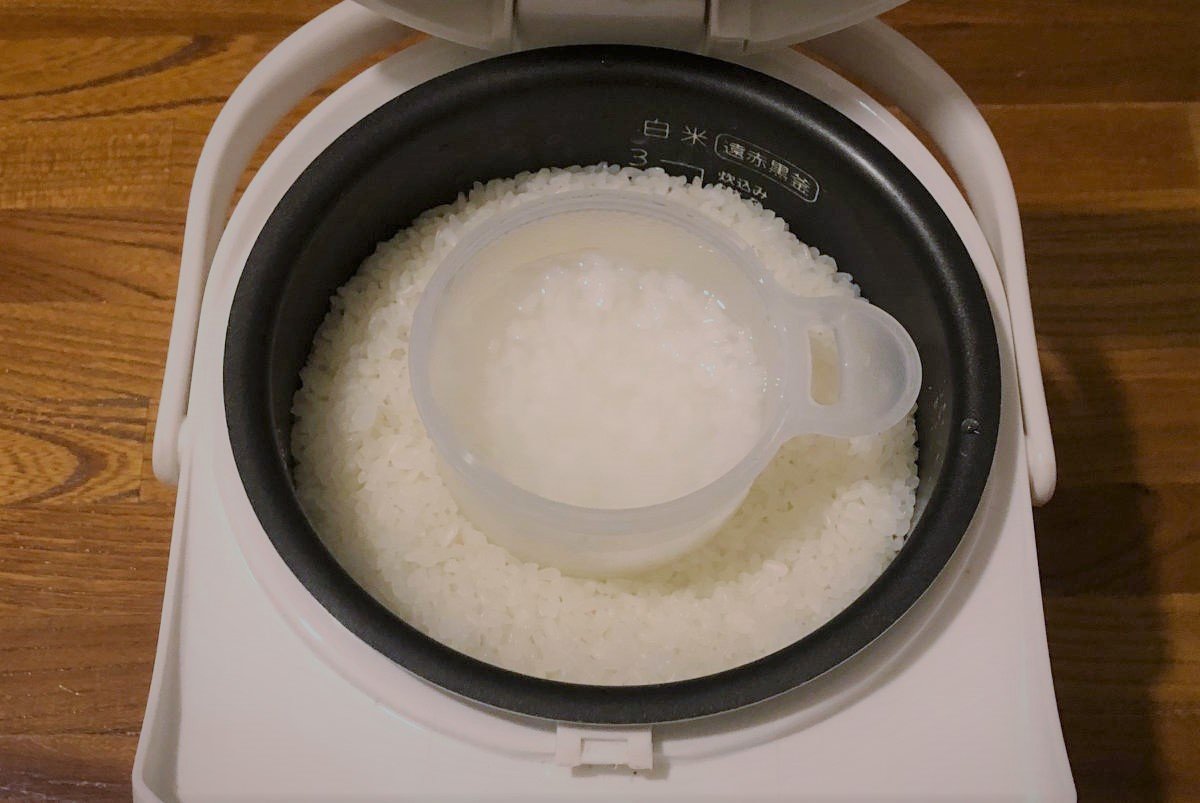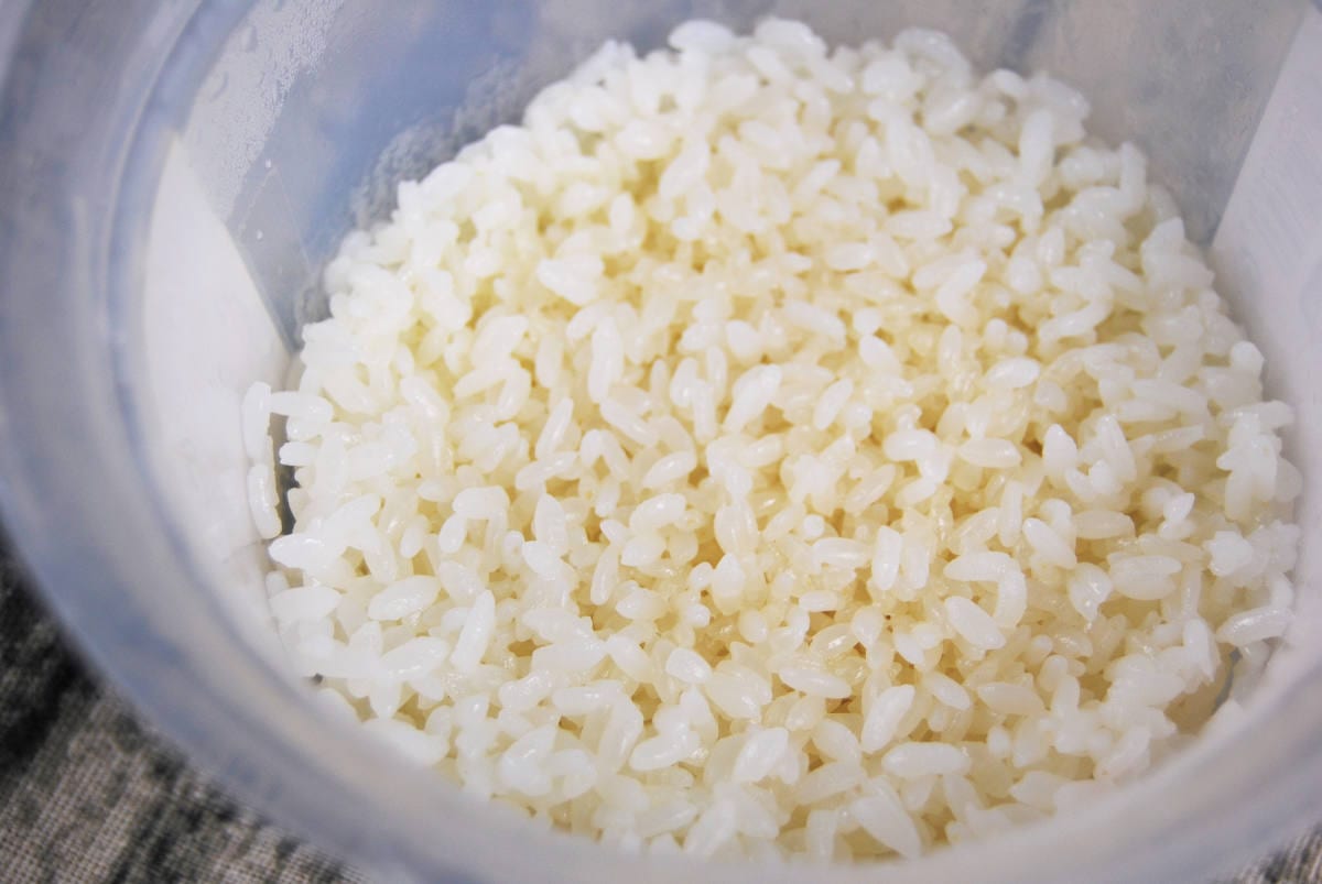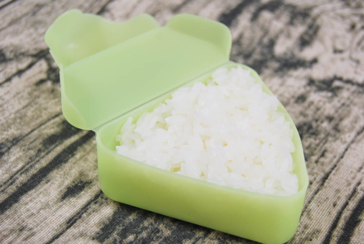 早速蓋を開けて、昨晩の残りご飯を詰めていきましょう! ご飯を詰めようと手のひらに乗せた瞬間、プルプル震え出した「簡単おにぎりパック 大」。無理にご飯を押し込むのではなく、しゃもじを使って優しく“ふんわり”とご飯を詰めてあげてくださいね。