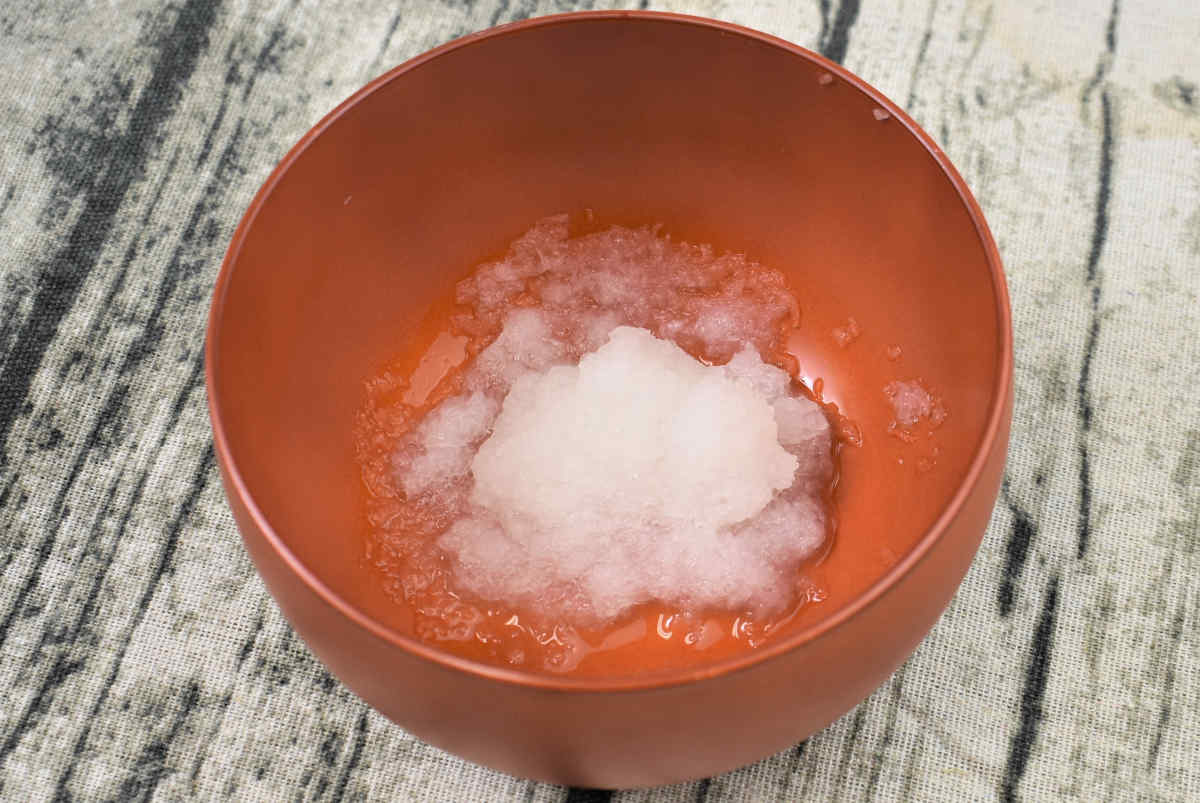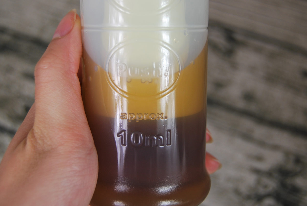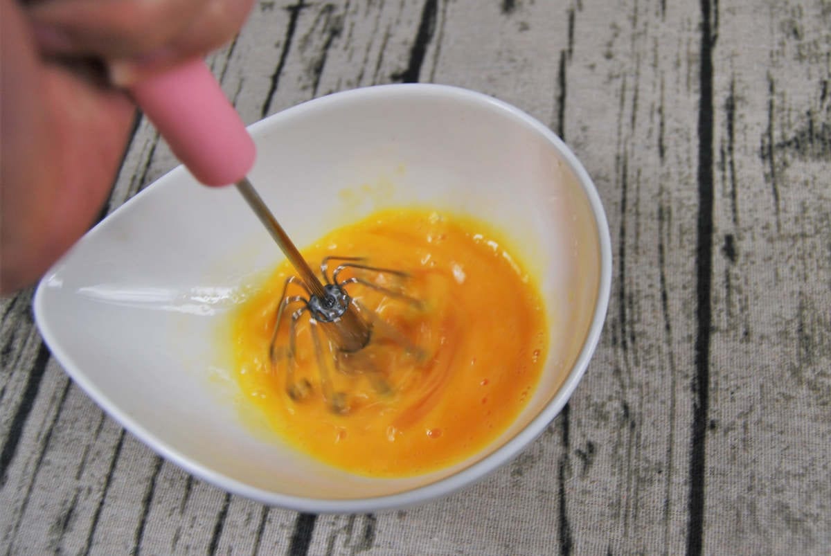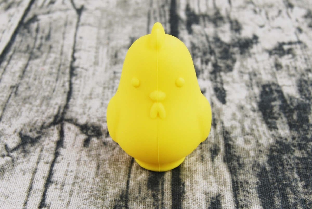 持ち上げると、たまごの黄身がお尻から少し顔を覗かせています。白身が多少混入してしまっても、そのまま持っていれば流れ落ちていくので心配は不要。産卵中のような見た目のニワトリを別の容器に移動して、黄身をとり出しましょう。