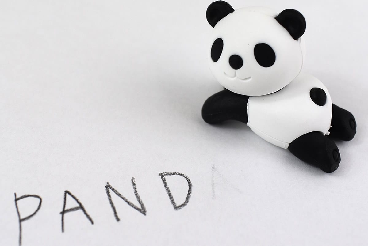 ダイソー「おもしろ消しゴム(パンダ)」おすわりしてる姿が可愛すぎて使えない!?