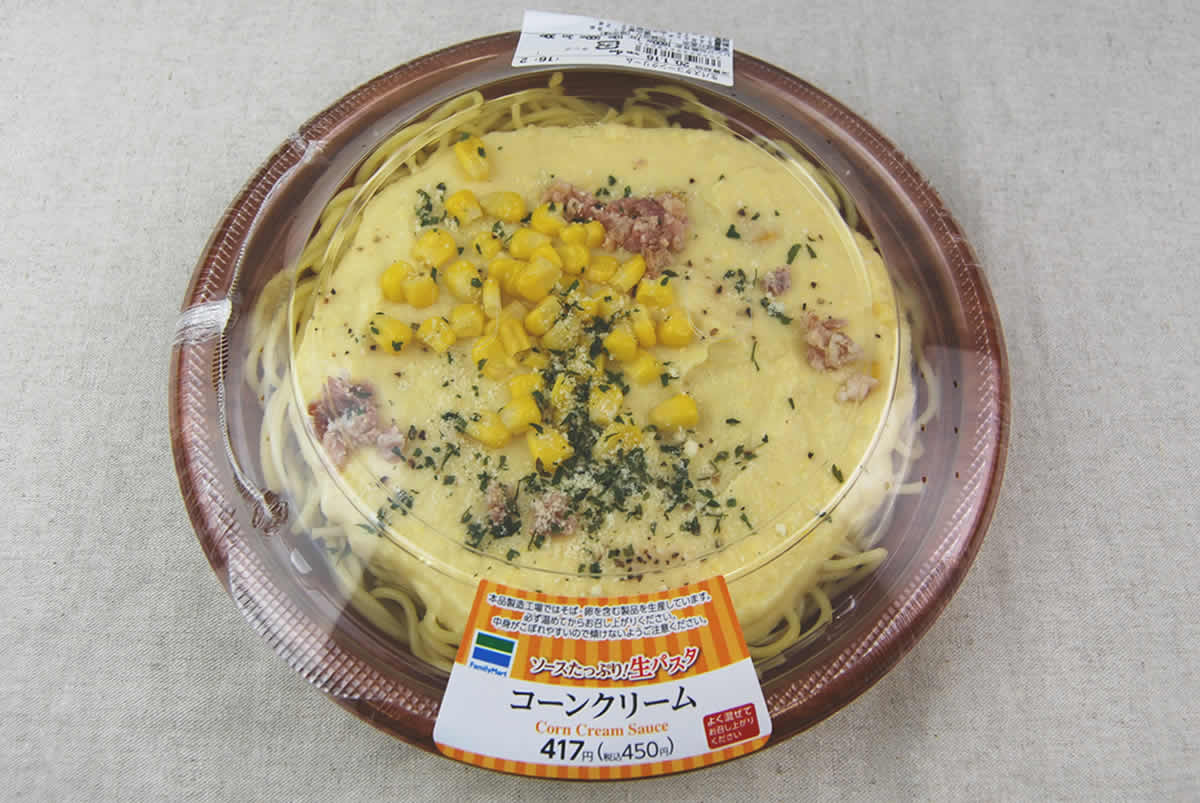 ファミマ「生パスタ ソースたっぷりコーンクリーム」 コーンスープとパスタってこんなに合うんだ…