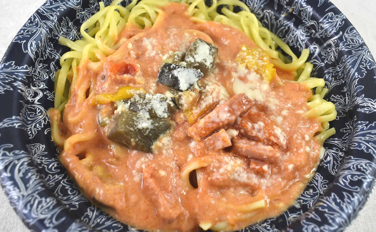 ローソン「もちプリッ! リングイネ 彩り野菜のトマトクリーム」こんなパスタ…食べたことない!