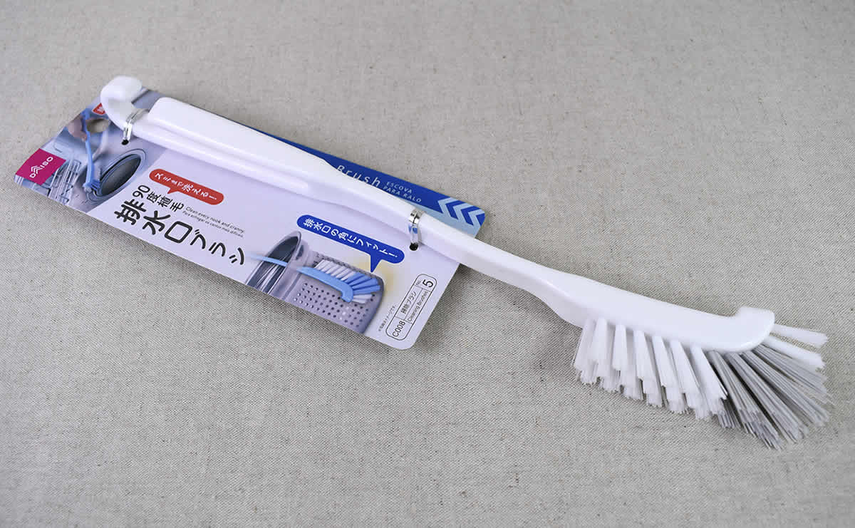 ダイソー「90度植毛 排水口ブラシ」排水口のヌメリがごっそり!
