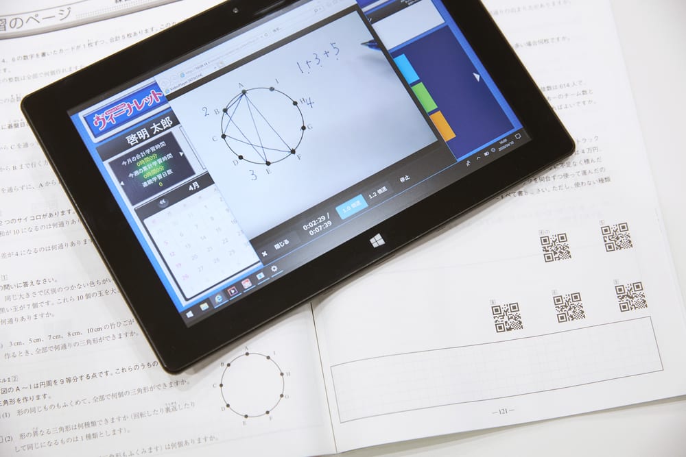 テキストの問題がわからなければ、QRコードで解説を聞くことができる。画面は教師の手元だけ