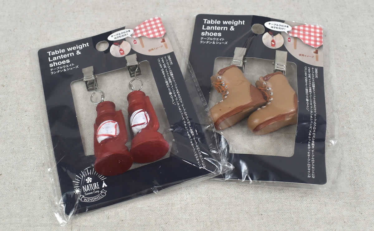 セリア「テーブルウエイト ランタン&シューズ」 テーブルクロスのズレをかわいく防ぐ!