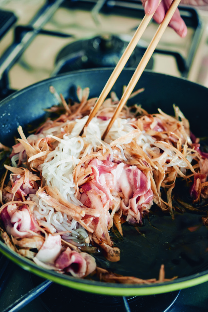 フライパンにAと①、しょうがを入れて中火にかける。水分がなくなるまで、ときどき混ぜながら煮つめる。