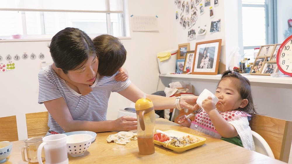 『ママをやめてもいいですか⁉』の一コマ。映画には育児に悩むパパたちも登場する。