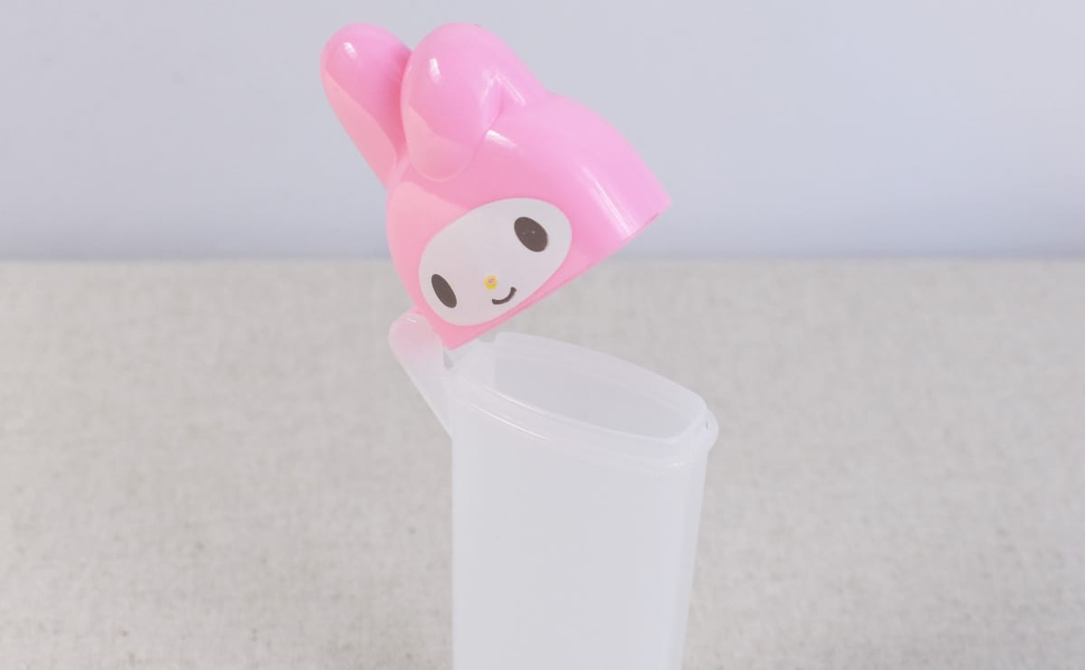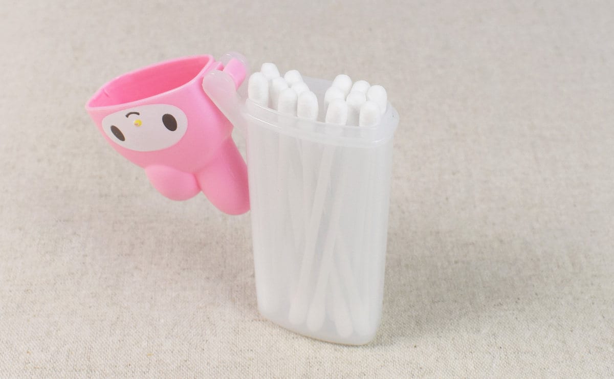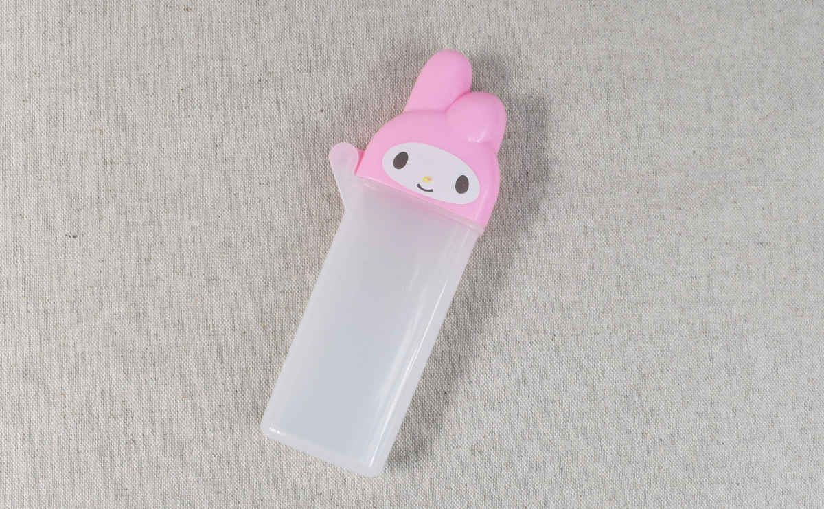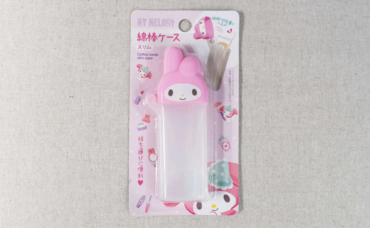 マイメロディがバッグの中にいる幸せ… 持ち運びに便利なダイソーの「スリム綿棒ケース」